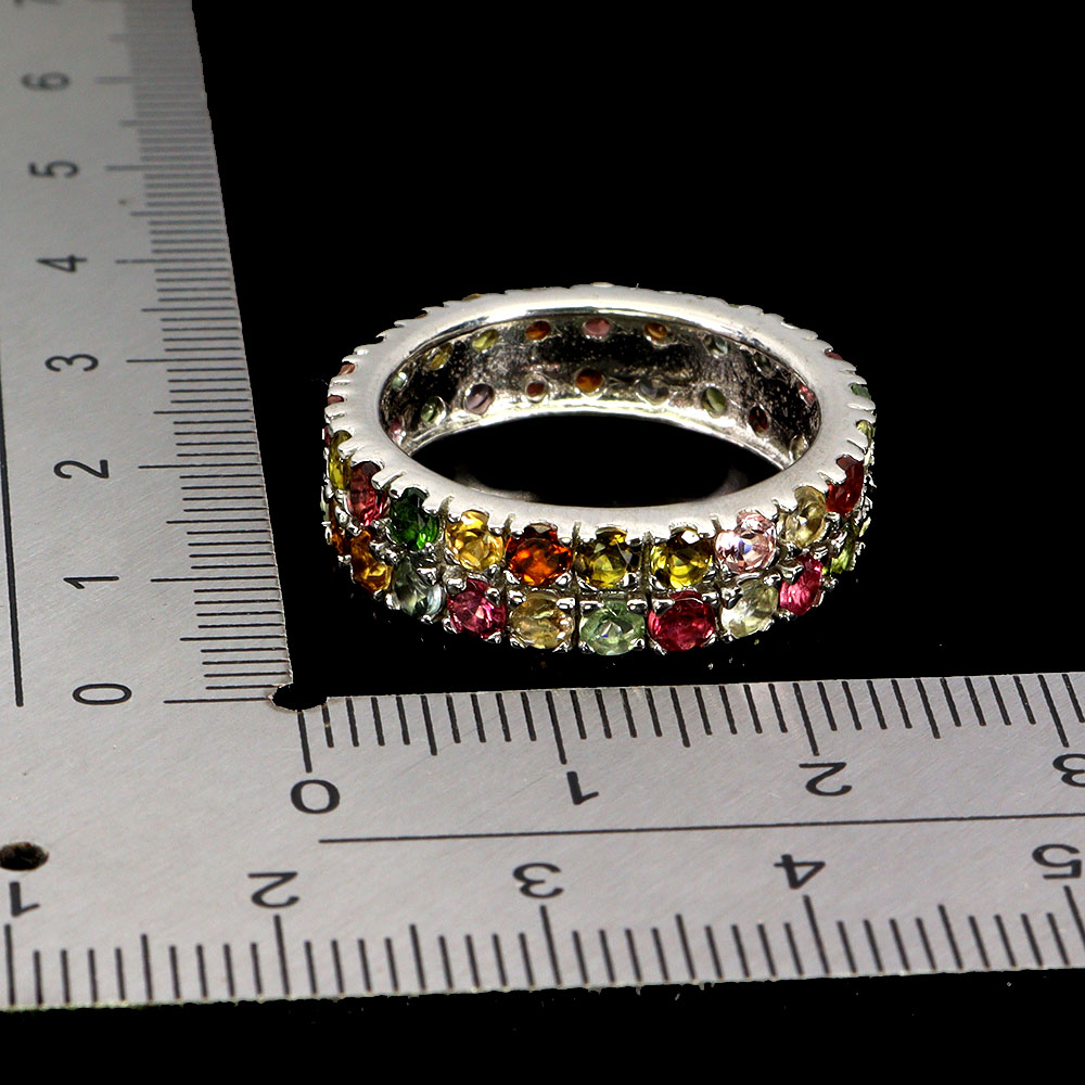 925 Sterling Silver Ring Round Tourmaline Natural Gemstone Jewelry Size 8.5