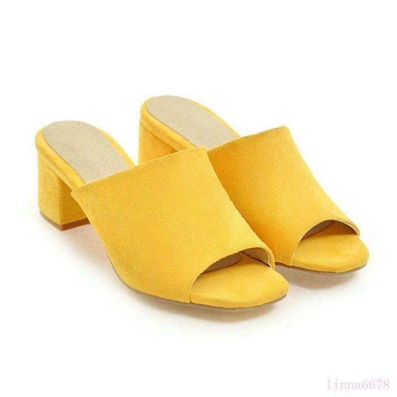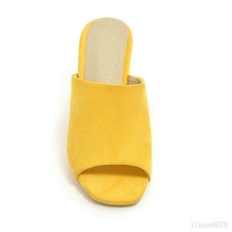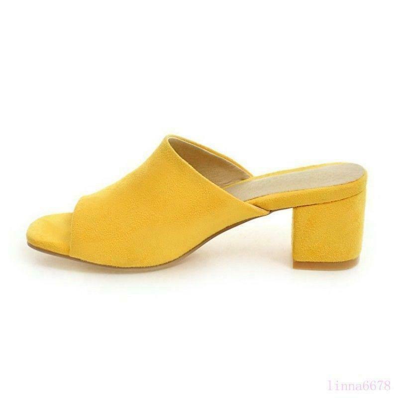 Spring Women's Mid Block Heel Shoes Sandals Mules Slip On Open Toe Casual Suede