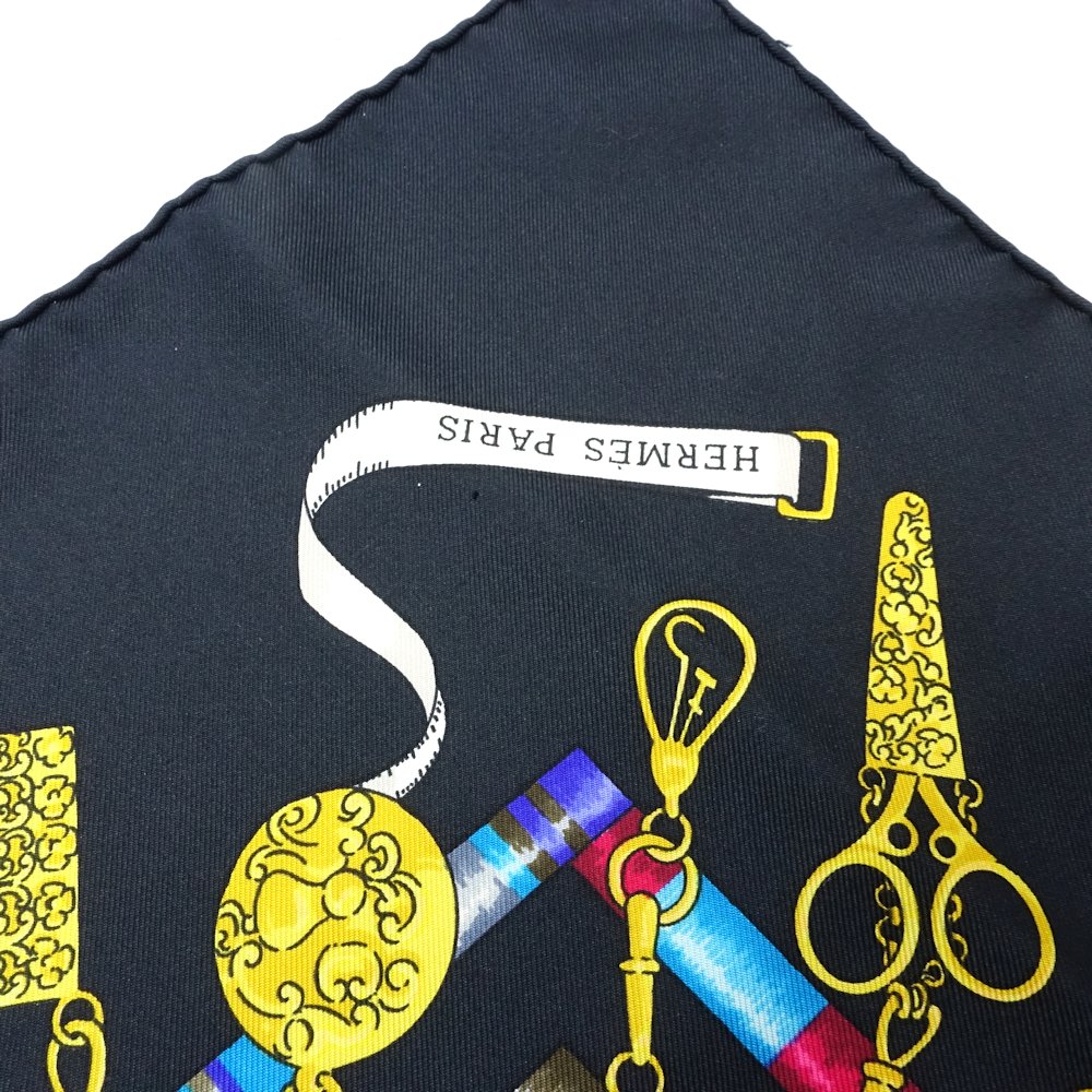 HERMES Scarf Carre 90 Petite main Silk Black /181549