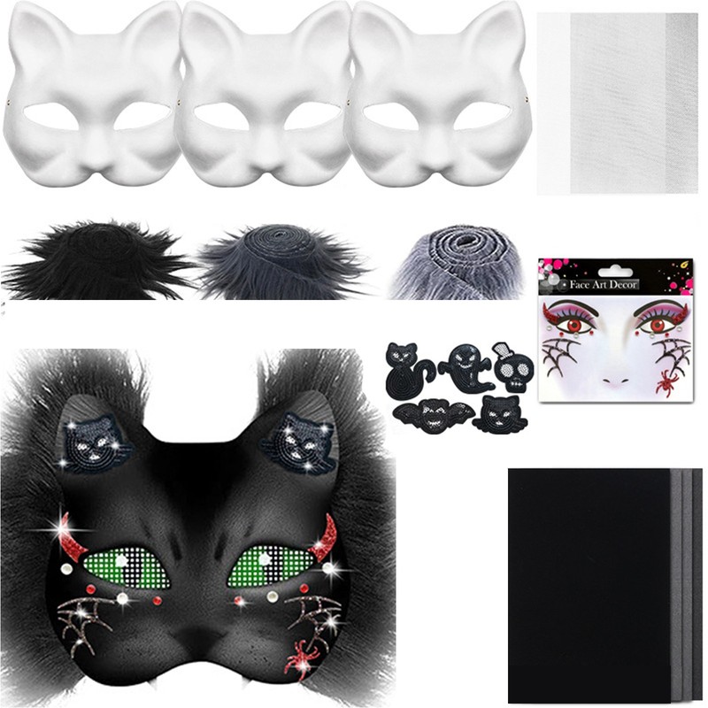 Comes with various accessories like faux fur, sequins, and cloth stickers, adding a trendy and eye-catching element to the mask.