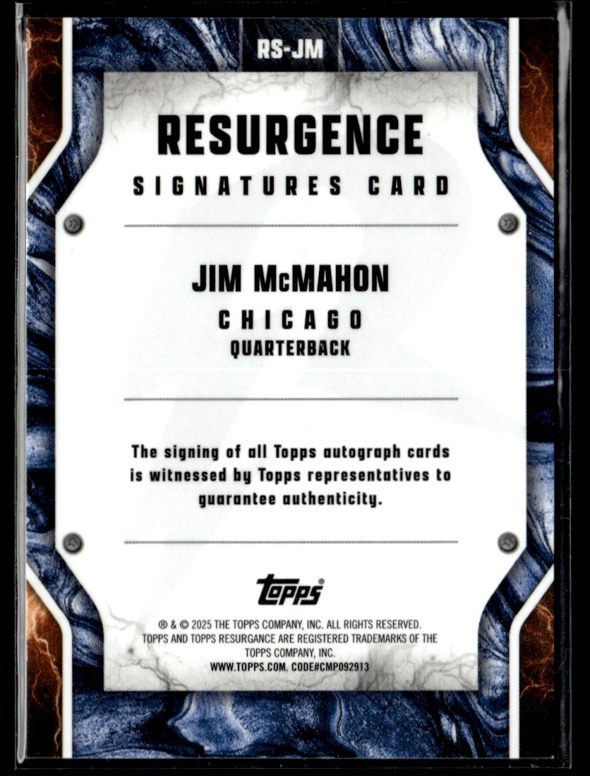 | 2024 Topps Resurgence Signatures Orange Power Surge Jim McMahon Auto 7/25 |
