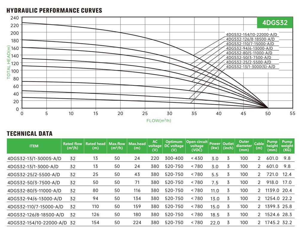 - 1 x WBS 4" DC 5500W stainless steel solar Pump with 6.6ft cable