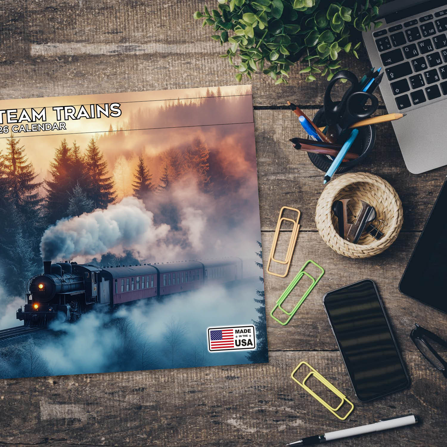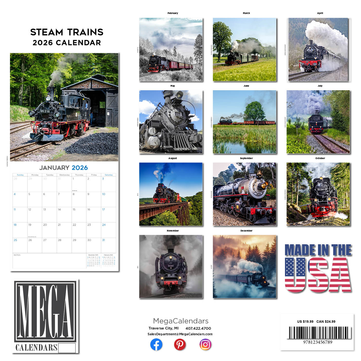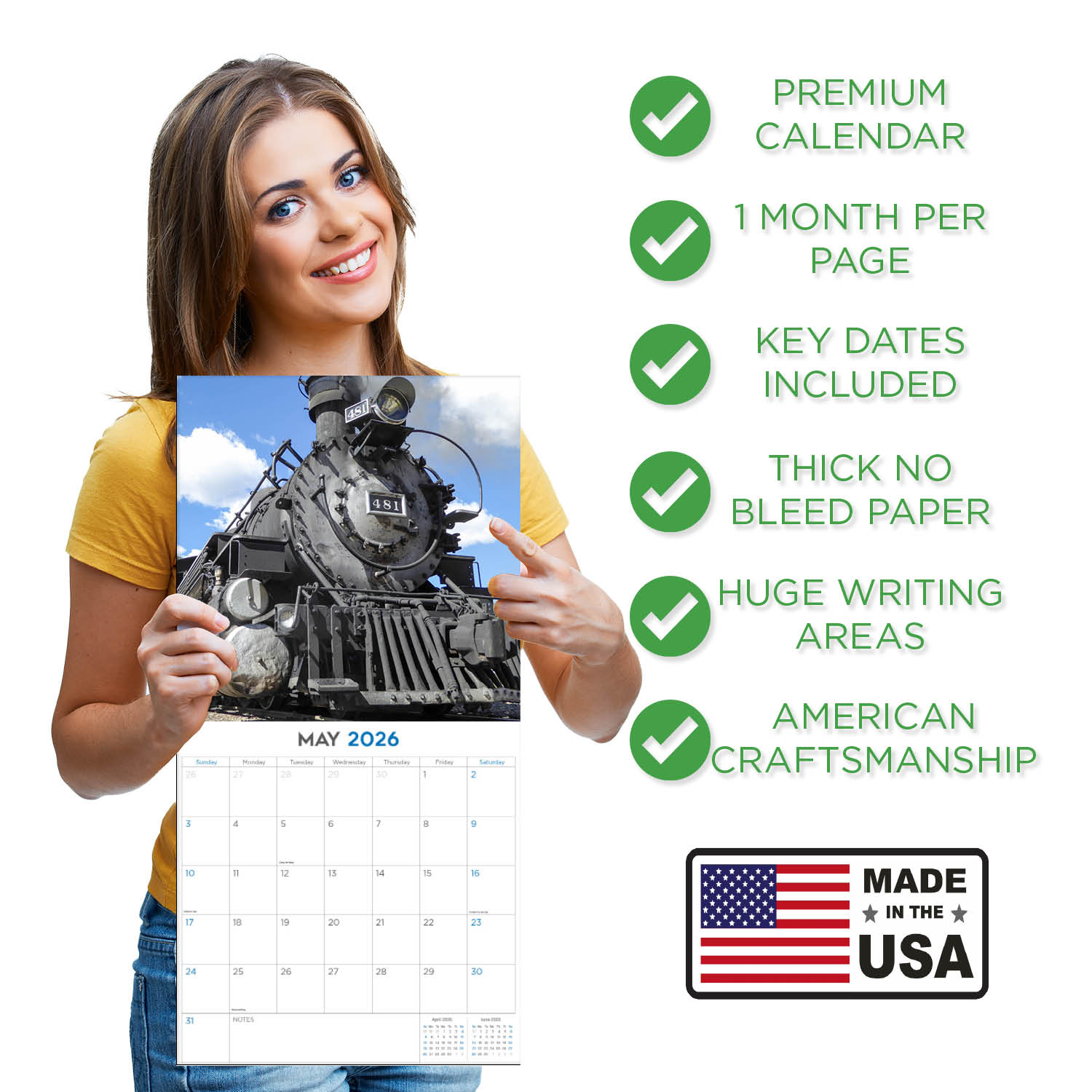 Steam Trains Calendar 2026 - Transportation Wall Calendar - Made in the USA!