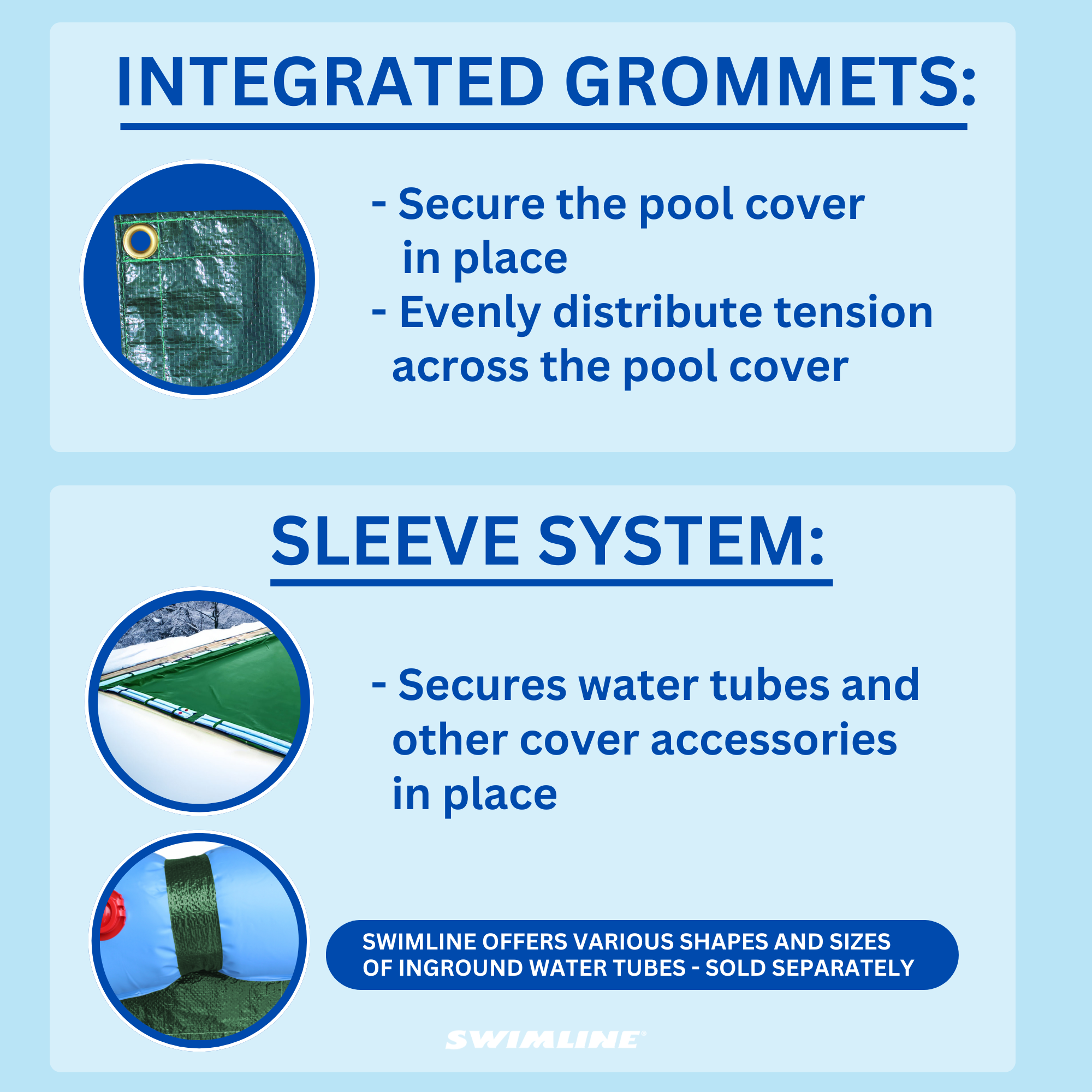 Moreover, our pool covers are not standalone solutions but part of a wider protective system within the Hydrotools by Swimline expansive assortment of pool accessories. They pair seamlessly with our extensive range of winterizing accessories such as ice equalizer air pillows, water tubes, and wall bags. With the integrated perimeter grommets, you can use these accessories for additional support and peace of mind.