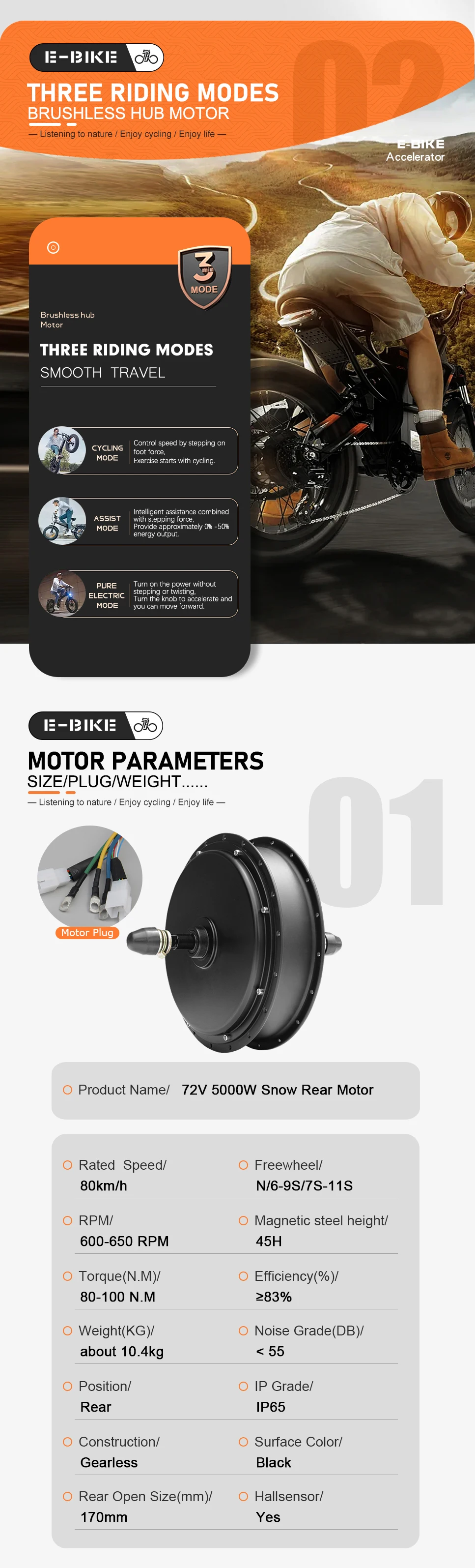 ◆Electric bicycle rear wheel conversion kit features 72V 5000W brushless and gearless hub motor for efficient and noiseless running; can easily convert your bicycle to electric bike and reach the maximum riding speed of 80KM/H, suitable for regular bicycles and mountain bikes that are used on commuting and short journey
