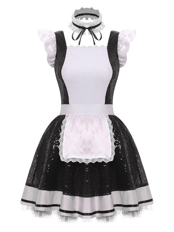 Lace trim details on the apron enhance the delicate and elegant feel of the dress, making it stand out.