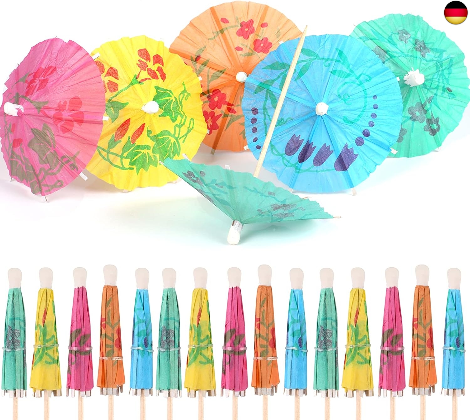 ZUVERLÄSSIGES MATERIAL: Aus Papier und Bambus-Zahnstocher, die bunten cocktail schirmchen sind umweltfreundliche, abbaubare Materialien, schadet Ihrem Körper nicht. Sie können sie mit viel Vertrauen verwenden.