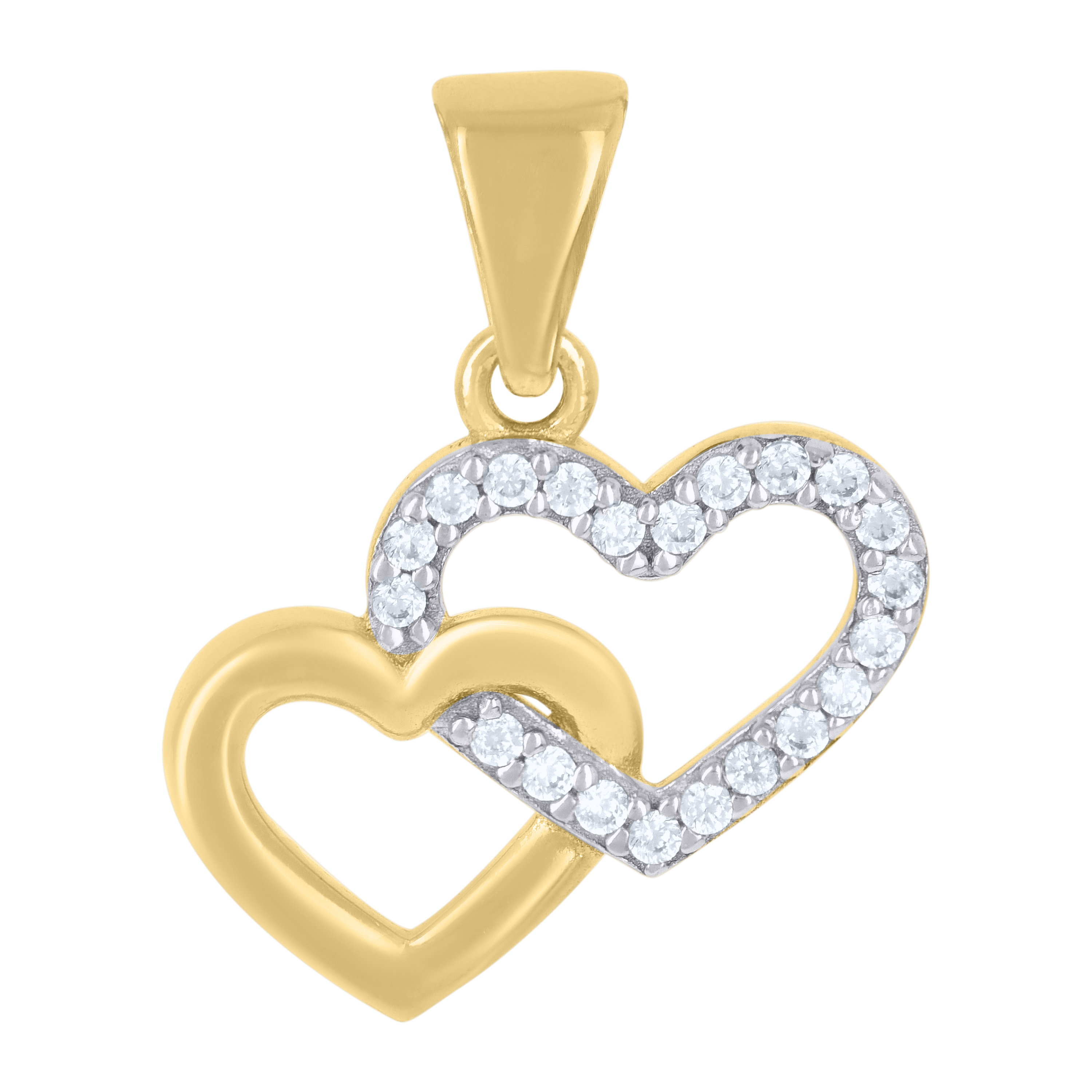 (1 gr. 10k Multi-Tone Gold | Length: 0.75" (including the bail) | Width: 0.65" | 10k Multi-Tone Gold Intertwined Double Heart Pendant Statement Charm)