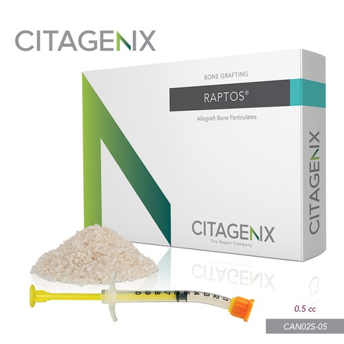 Raptos mineralized bone grafts offer an osteoconductive platform for bone regeneration and Raptos demineralized particles offer an osteoinductive boost. Used either alone or as part of a composite bone graft, allograft bone particulates supply a natural framework facilitating the attachment of osteogenic precursor cells. Raptos Allograft Premium Blend – This Cortical Mineralized/Demineralized blend combines two of the most popular allograft particles used in dentistry, all in a single syringe!