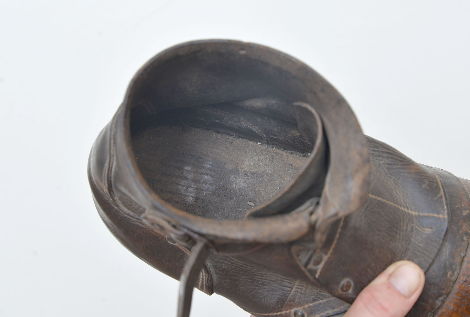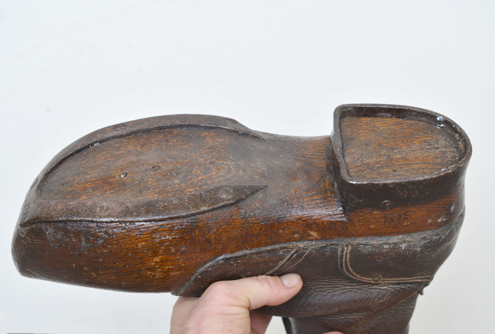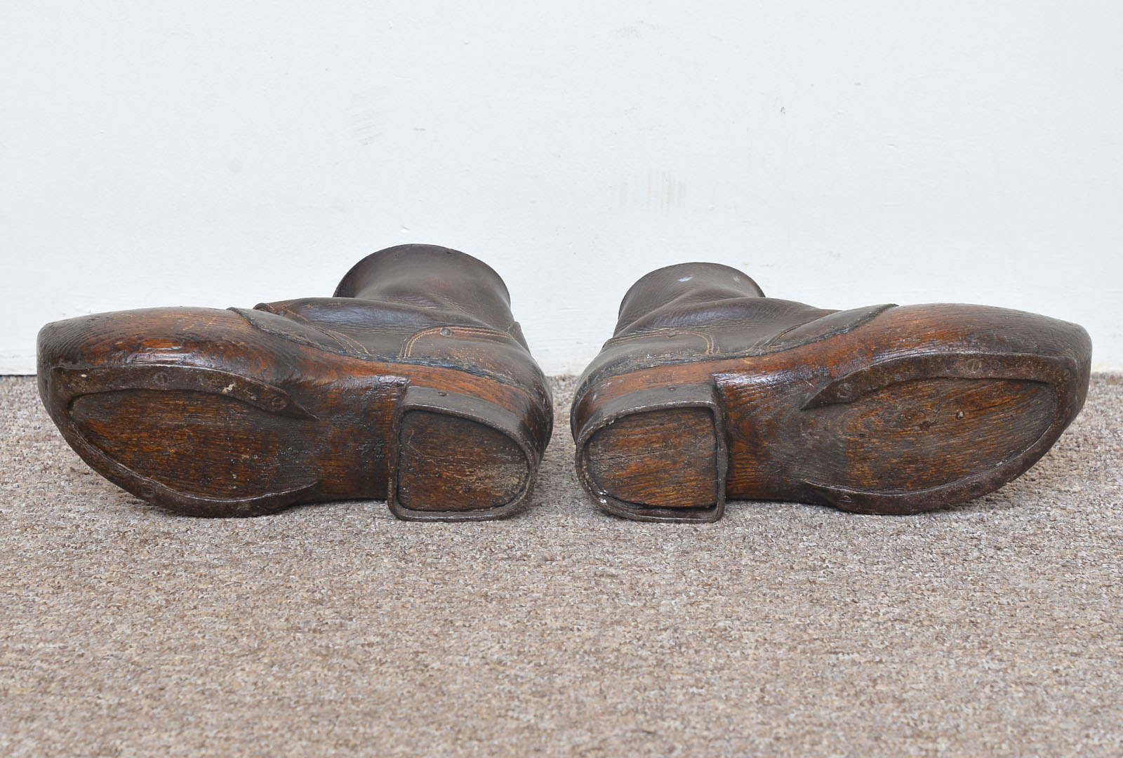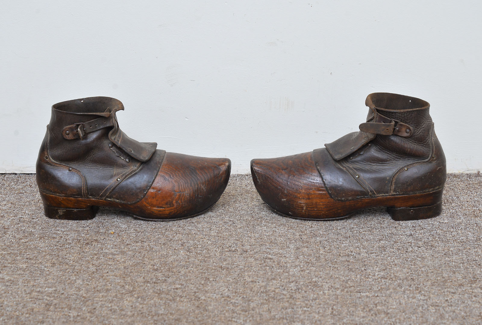 Believed to be known as farm worker or garden clogs, they have wooden soles and leather uppers with metal “horse shoe style” reinforcement to the underside meaning they have lasted until present day.