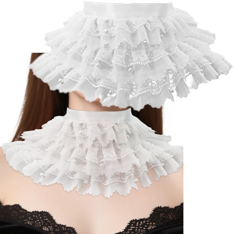 The fake collar and arm sleeves are both versatile, adding a touch of charm to different outfits, whether it’s a simple dress or a more elaborate ensemble.