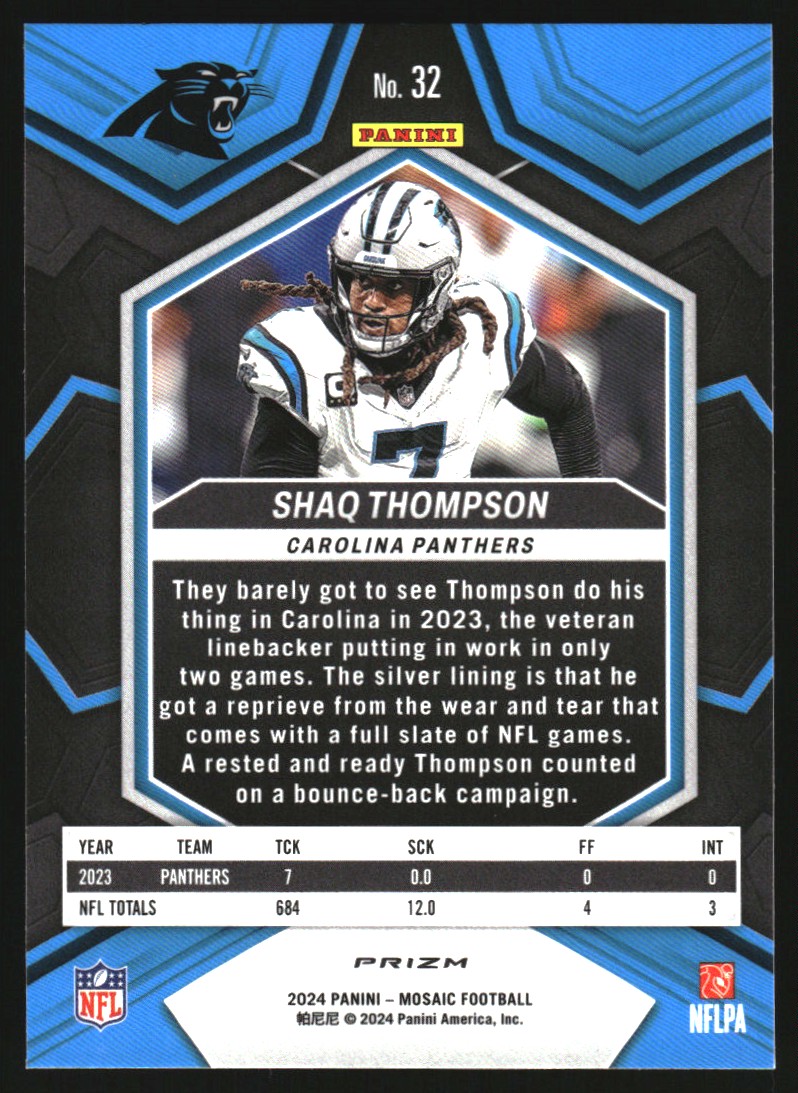 | SHAQ THOMPSON 2024 PANINI MOSAIC GREEN #32 CAROLINA PANTHERS |