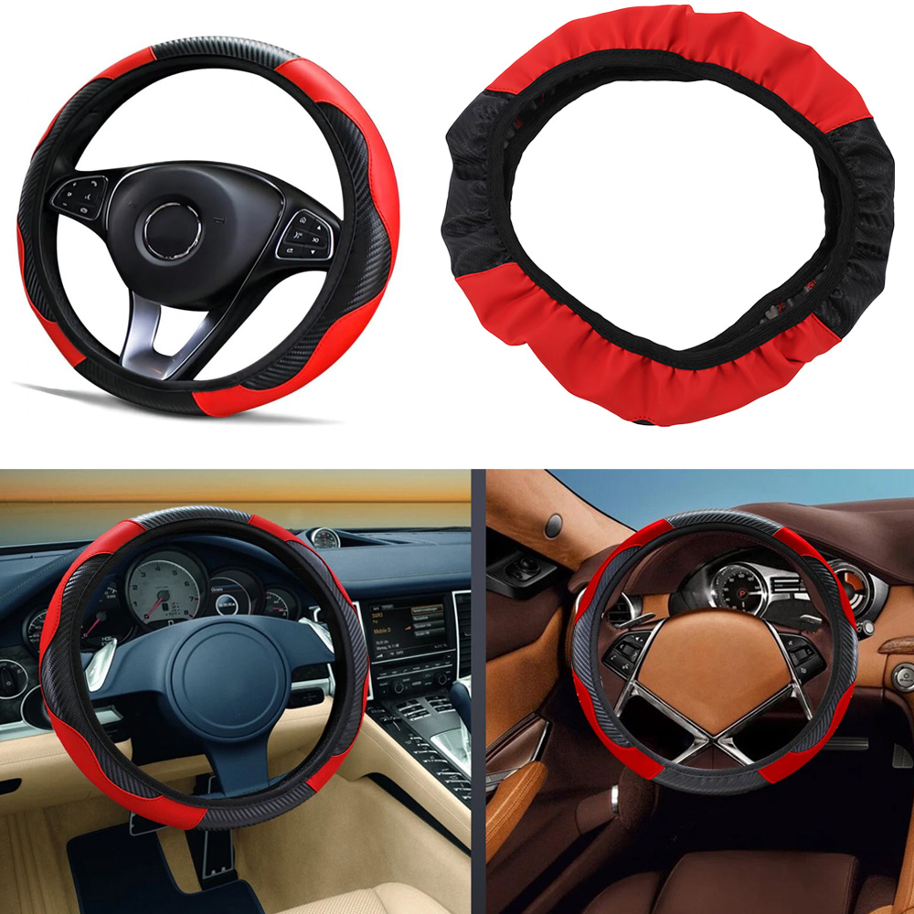Car Accessories Steering Wheel Cover Red Leather Anti-slip 15" / 38cm Universal