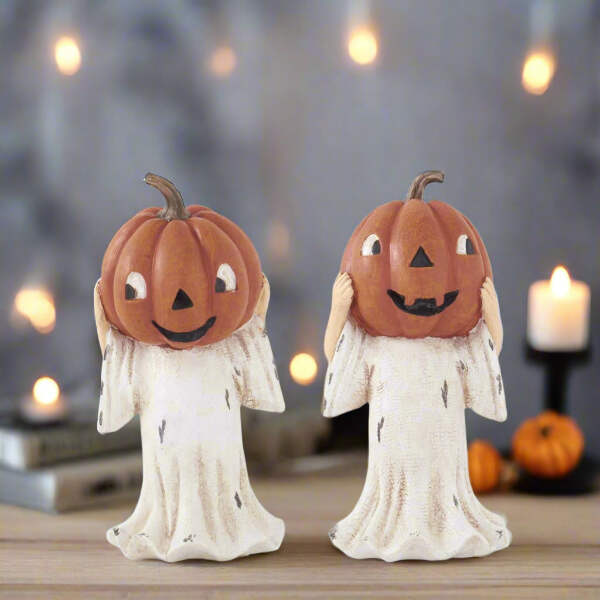This 6.25" Silly Jack O Lantern Head Ghost Decoration is the perfect addition to your Halloween decor.
