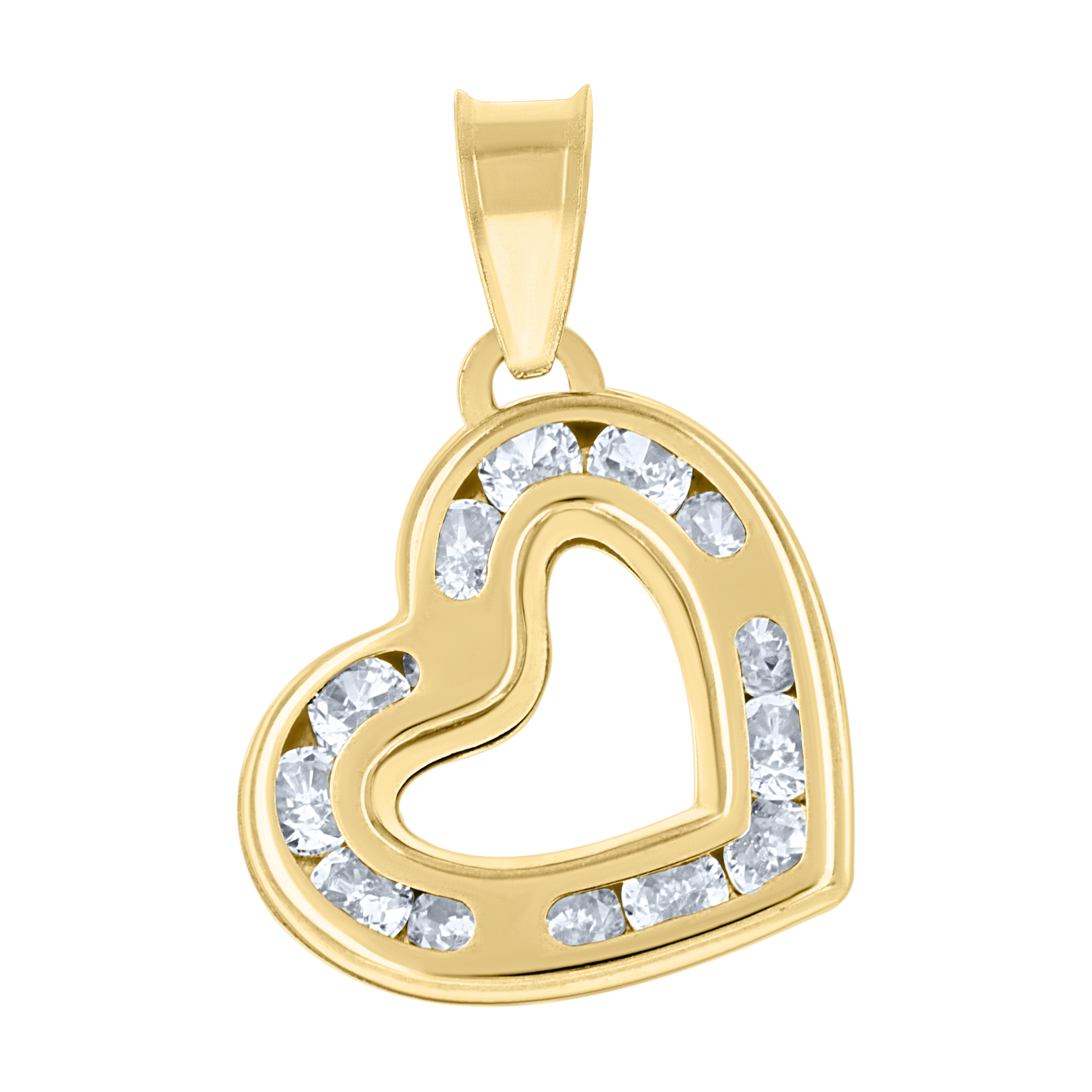 JFL Diamonds brings to you this real 14k Yellow Gold Sideways Heart Pendant. It is 100% real genuine gold. The charm will come with the 14k Stamp on back of the bail. This is a very simple and beautiful design for the gold lovers with Cubic Zirconia stones. This pendant weighs approx. 0.57 gr.