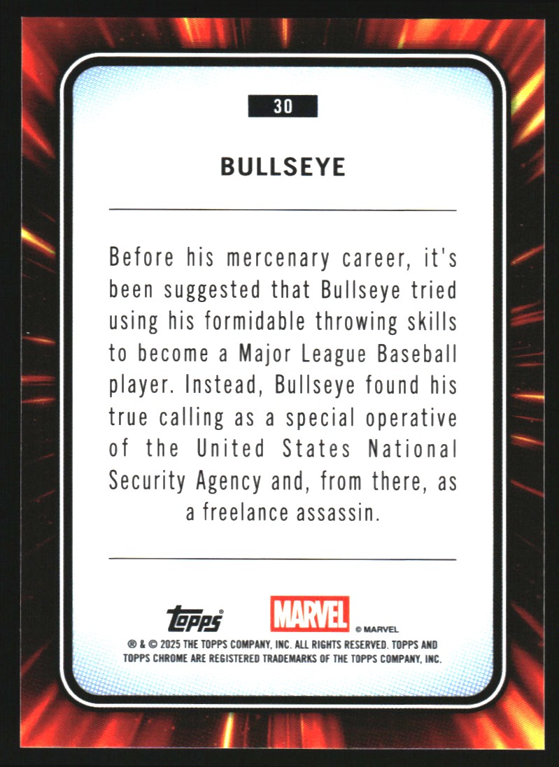 | BULLSEYE 2025 TOPPS CHROME MARVEL SAPPHIRE GREEN #30 30/99 |