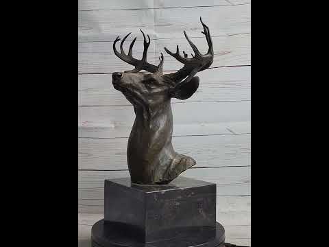Embrace the mesmerizing beauty of the deer with this exceptional bronze bust sculpture. This remarkable piece is a tribute to the majestic presence of the deer, showcasing its regal stature, impressive antlers, and captivating gaze. The carefully sculpted antlers boast forward-curving main beams adorned with an intricate array of tines that gracefully extend outward, creating a breathtaking display of elegance and strength. Every detail of this masterpiece speaks to the meticulous craftsmanship that went into its creation.