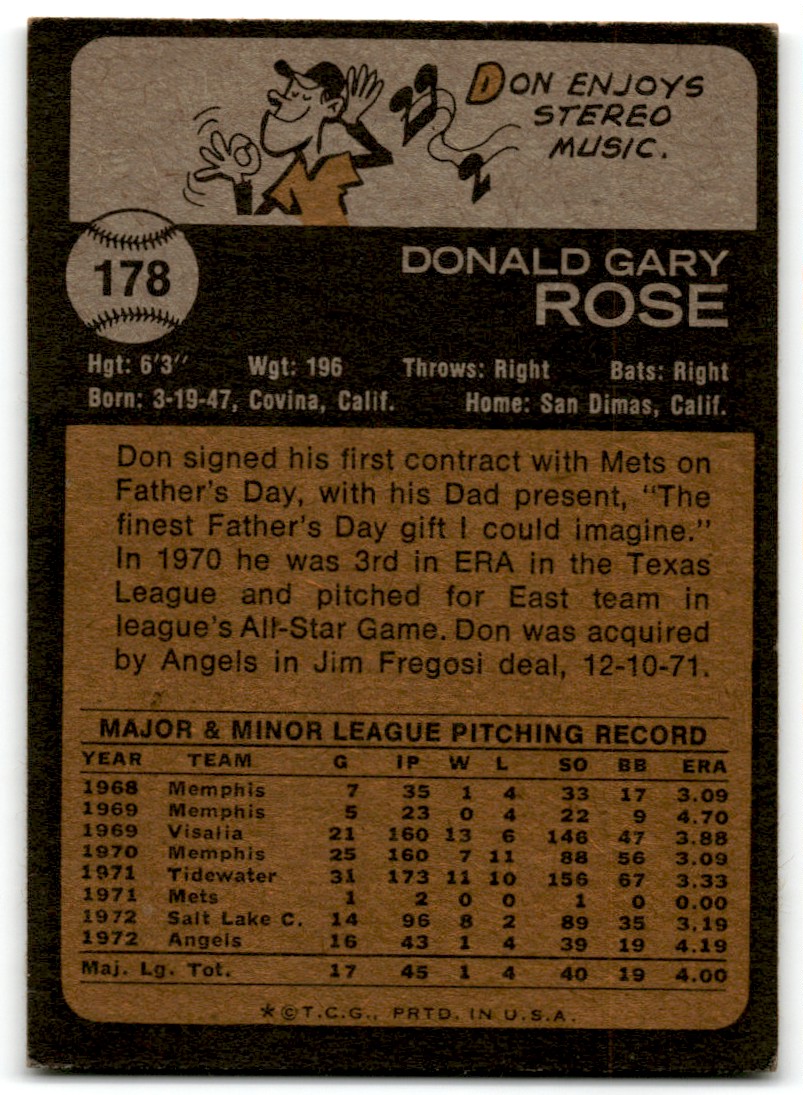 | 1973 Topps Don Rose Rookie California Angels #178 |