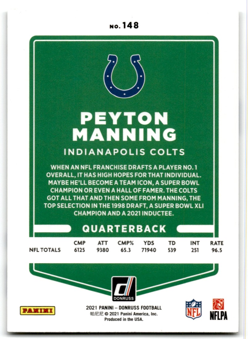 | 2021 Donruss Peyton Manning Indianapolis Colts #148 |