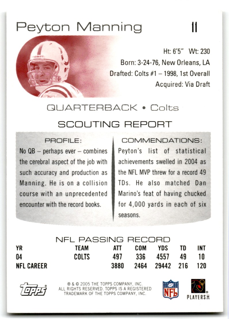 | 2005 Topps Draft Picks & Prospects Peyton Manning Indianapolis Colts #11 |