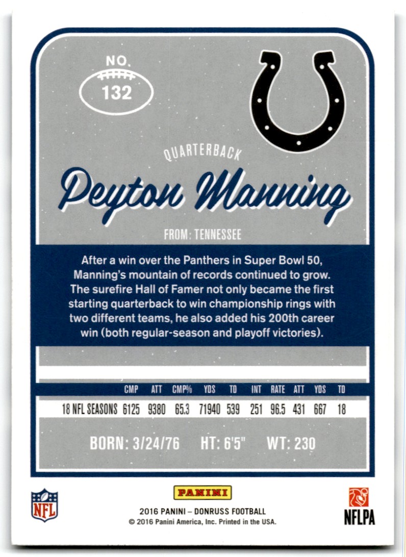 | 2016 Donruss Peyton Manning Indianapolis Colts #132 |