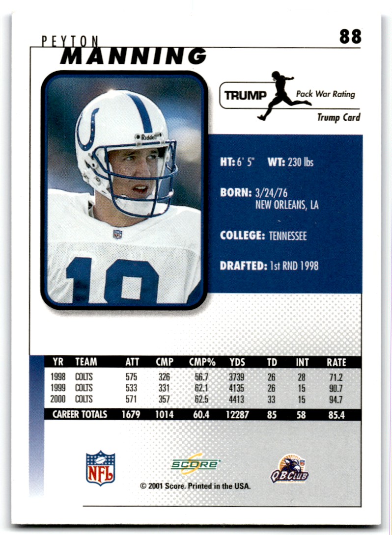| 2001 Score Select Peyton Manning Indianapolis Colts #88 |
