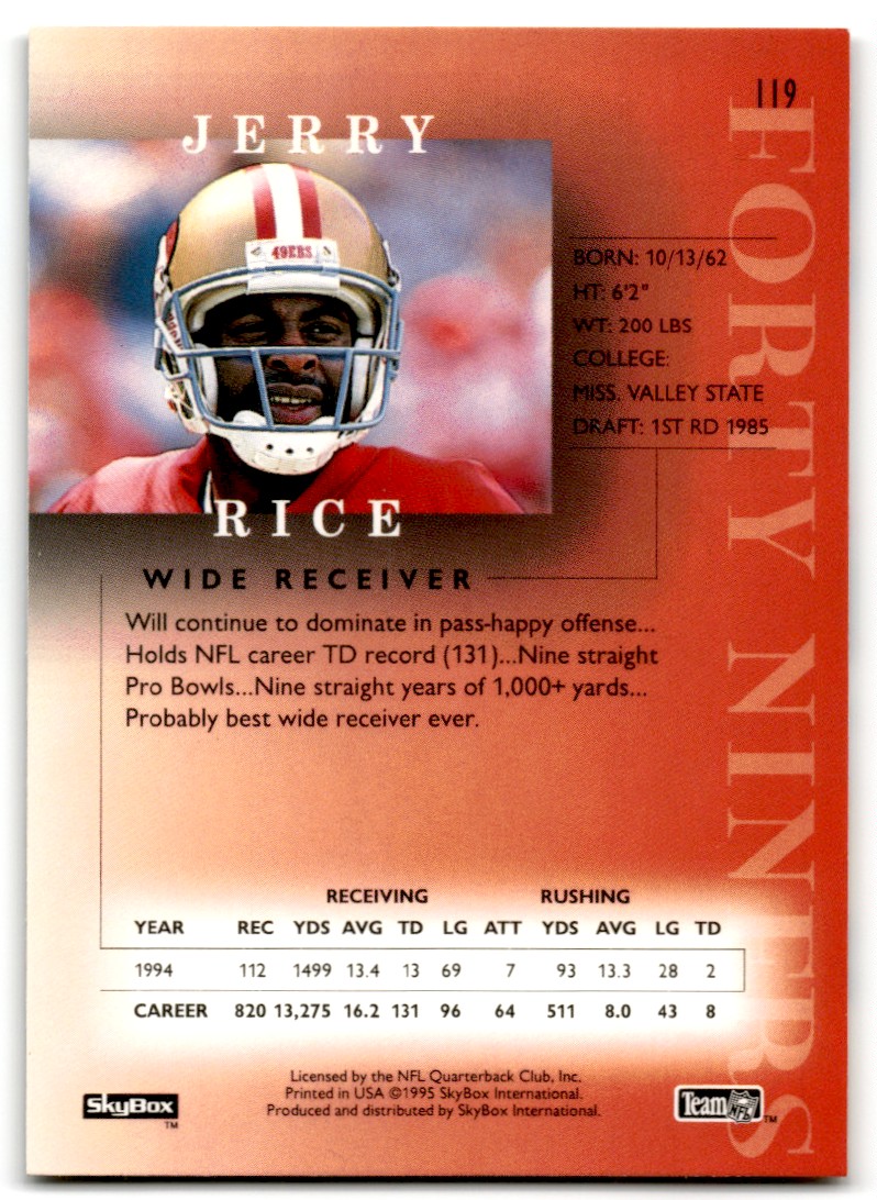 | 1995 SkyBox Premium Jerry Rice San Francisco 49ers #119 |