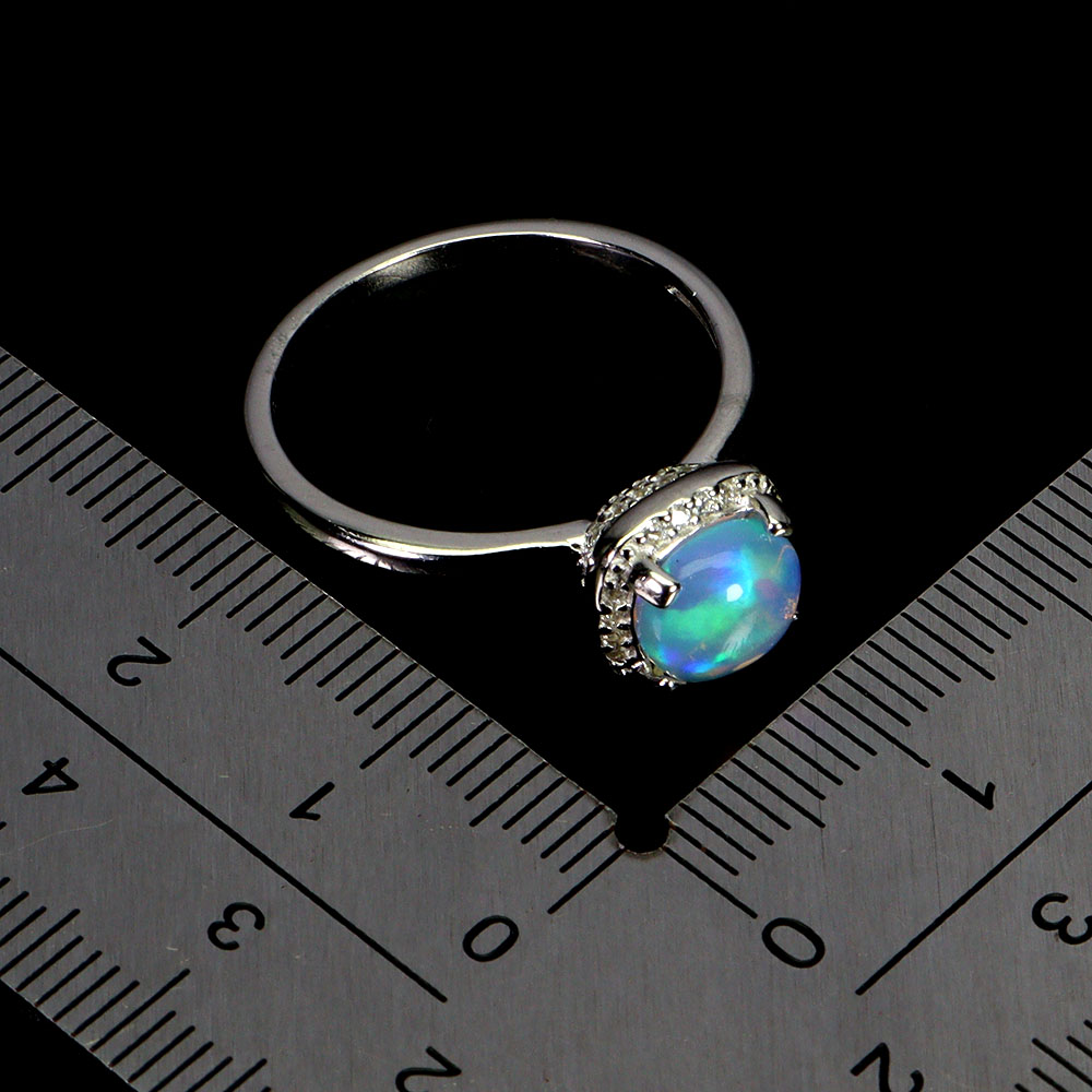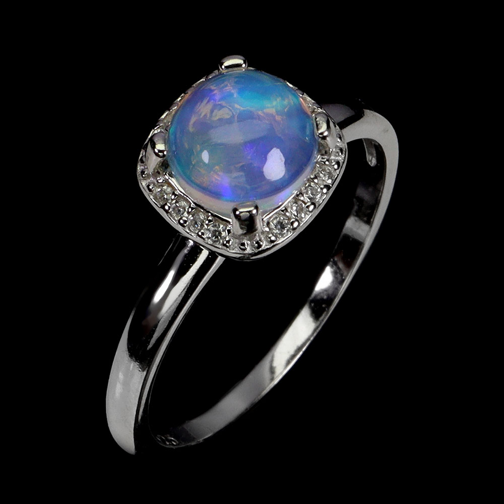 925 Sterling Silver Ring Round Fire Opal 7mm Natural Gemstone Jewelry Size 7