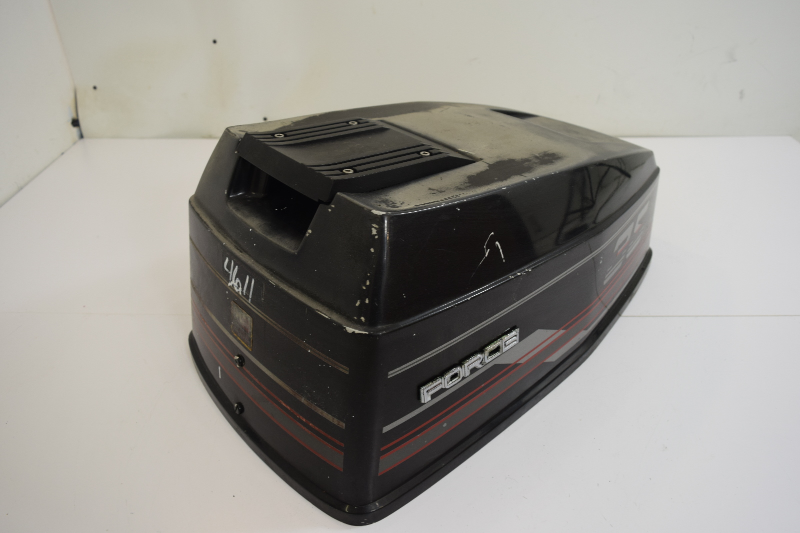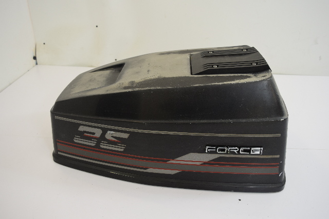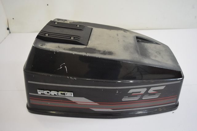 This hood is in good condition! It was removed from a freshwater 35 HP Force engine. As with any used part, there are minimal signs of previous use, but nothing that will effect the overall performance. There are a few light scratches and rub marks, but this is entirely cosmetic. The foam inside the cowling has been removed and will need to be replaced. This does not have a seal. There are no cracks or breaks in the cowling whatsoever. This does have fading on the top of the the hood, please see pictures. This cowling is in great condition and will make an excellent replacement for your outboard! |