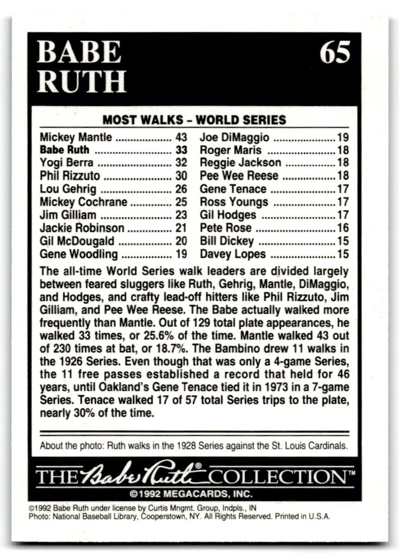 | 1992 Megacards Babe Ruth World Series - 33 Walks New York Yankees #65 |