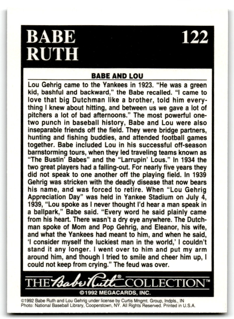 | 1992 Megacards Babe Ruth The Bambino New York Yankees #122 |