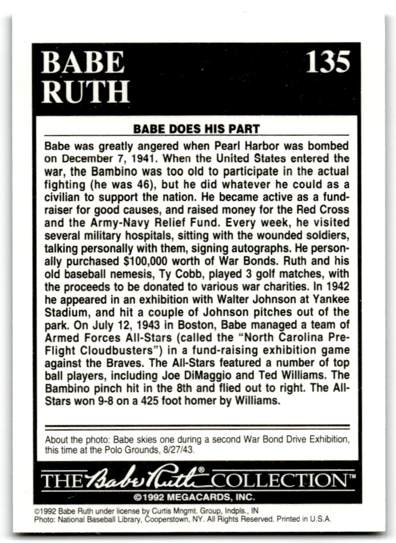 | 1992 Megacards Babe Ruth The Bambino New York Yankees #135 |