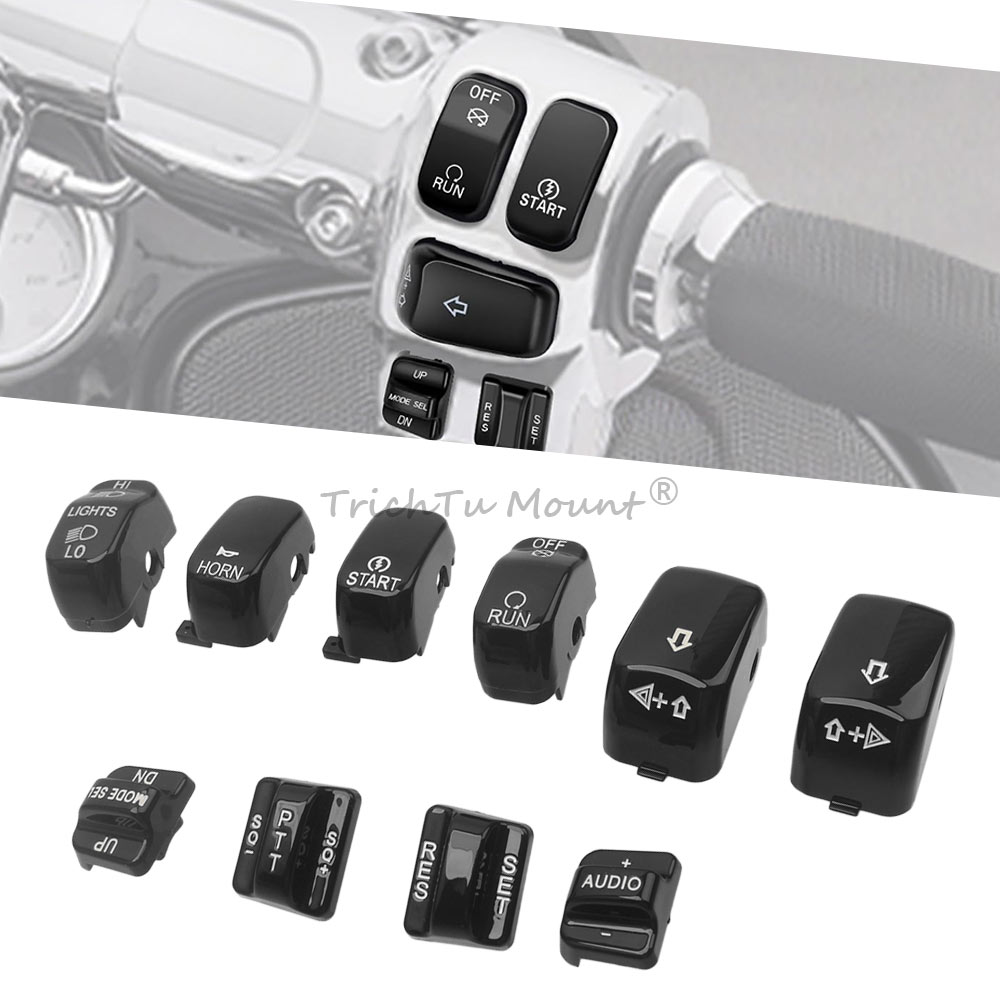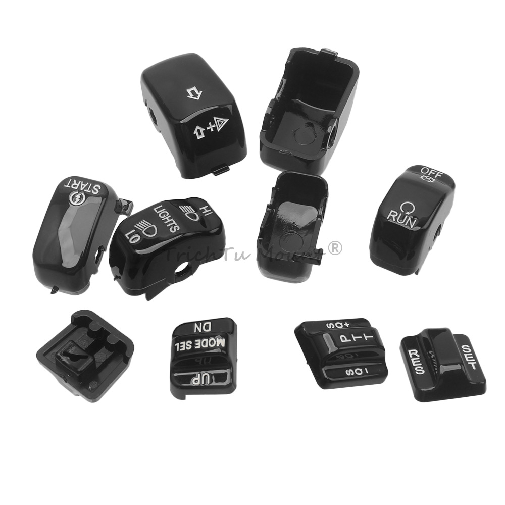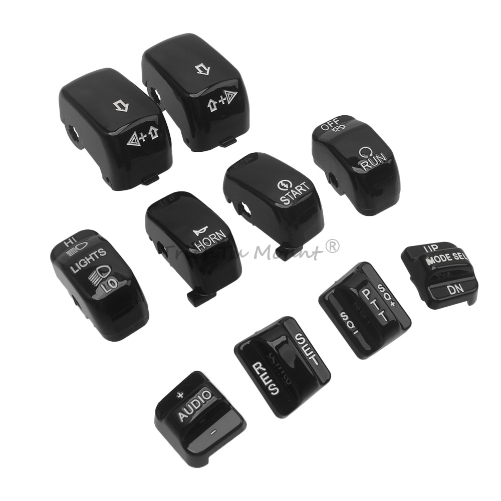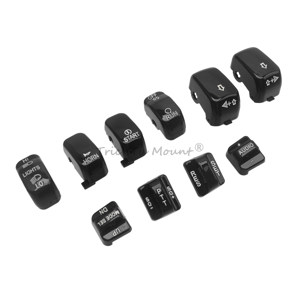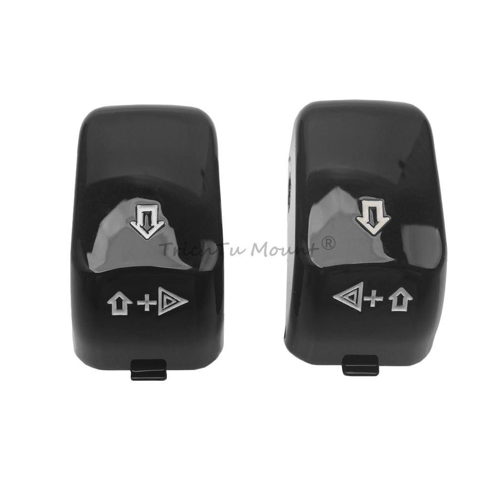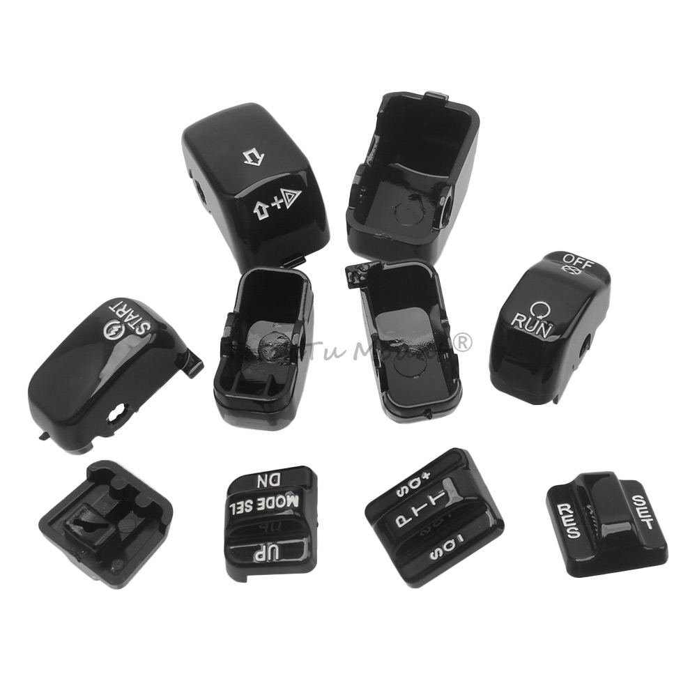 Black switch caps complement other chrome hand control accessories (Chrome/black Master Cylinder Kit, Chrome/black Hand Levers, Chrome/black Switch Housings and Chrome/black Master Cylinder Cover)