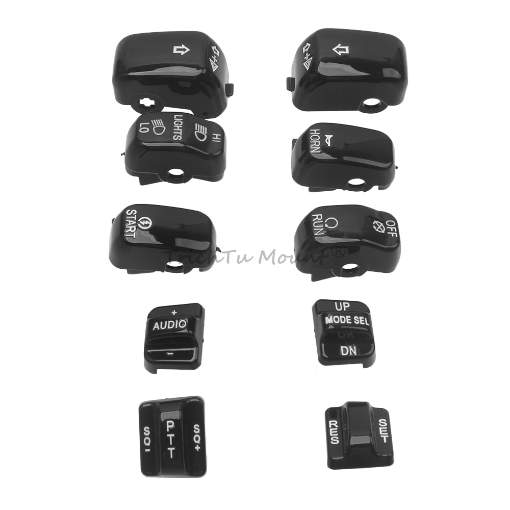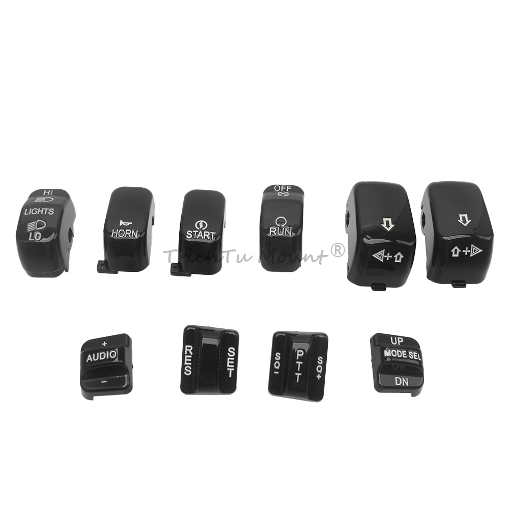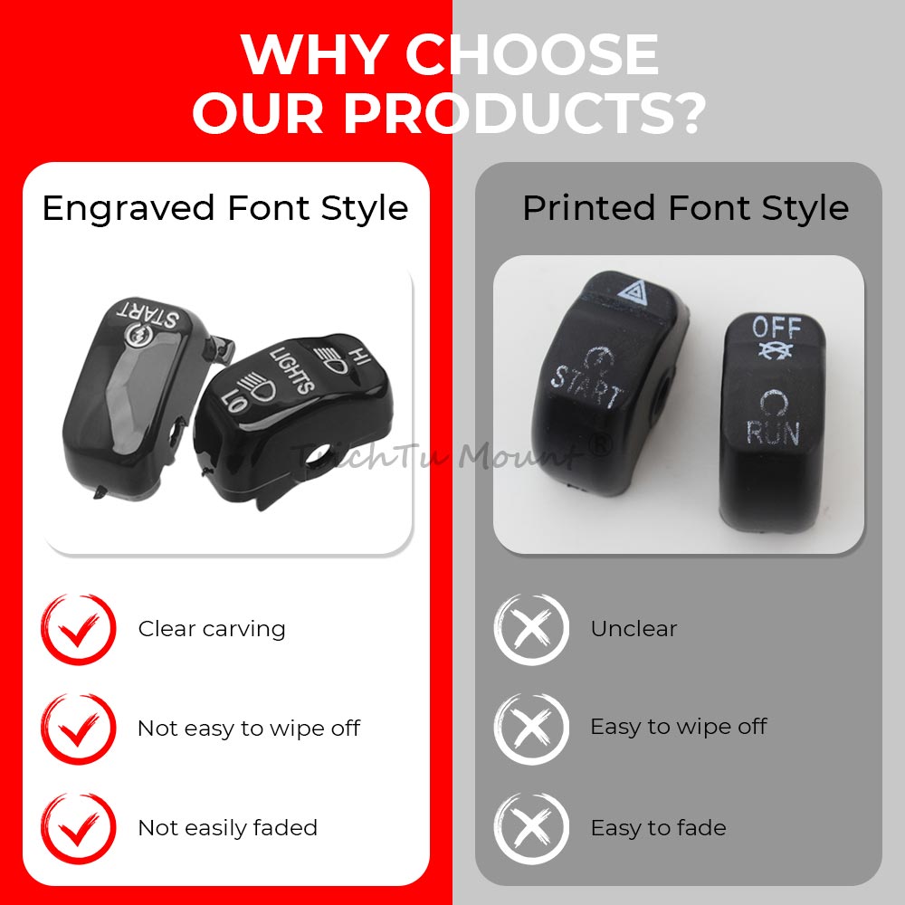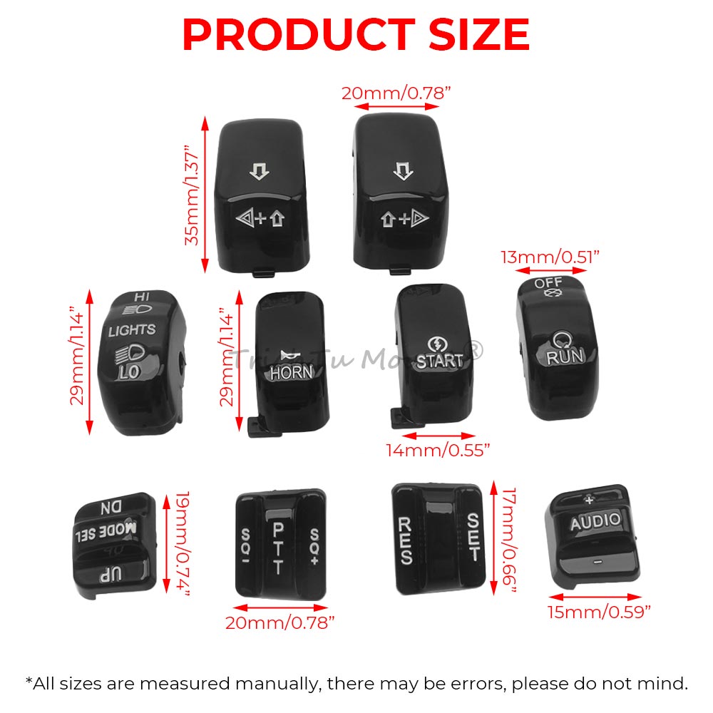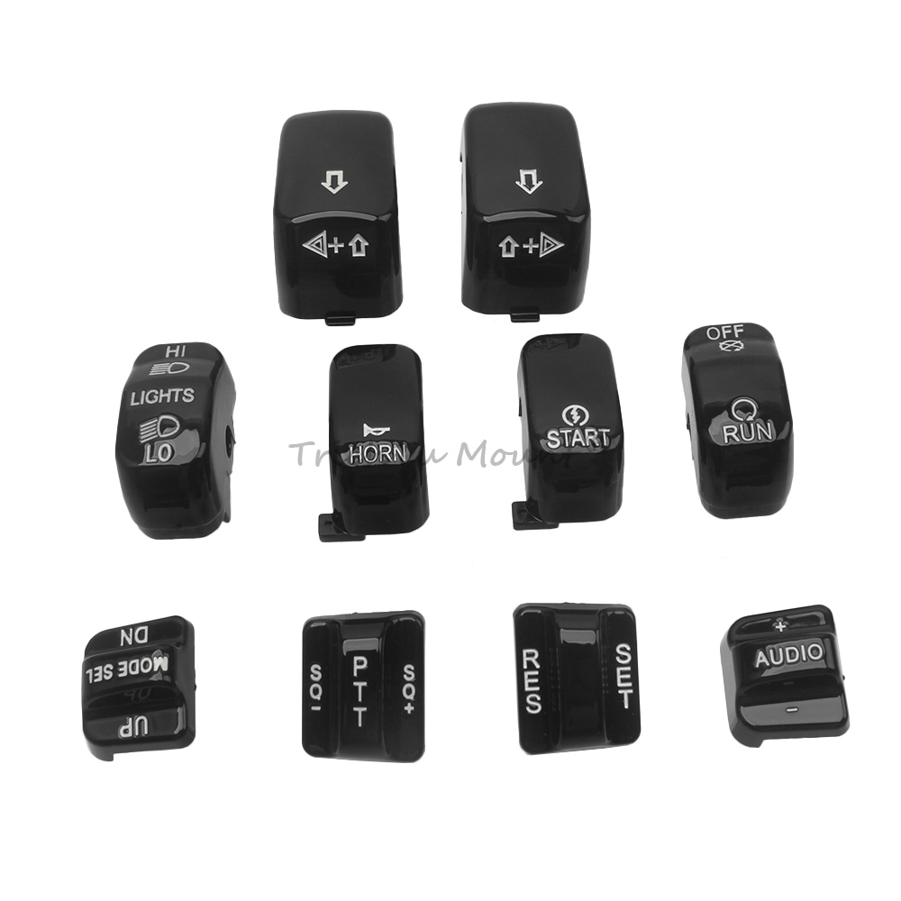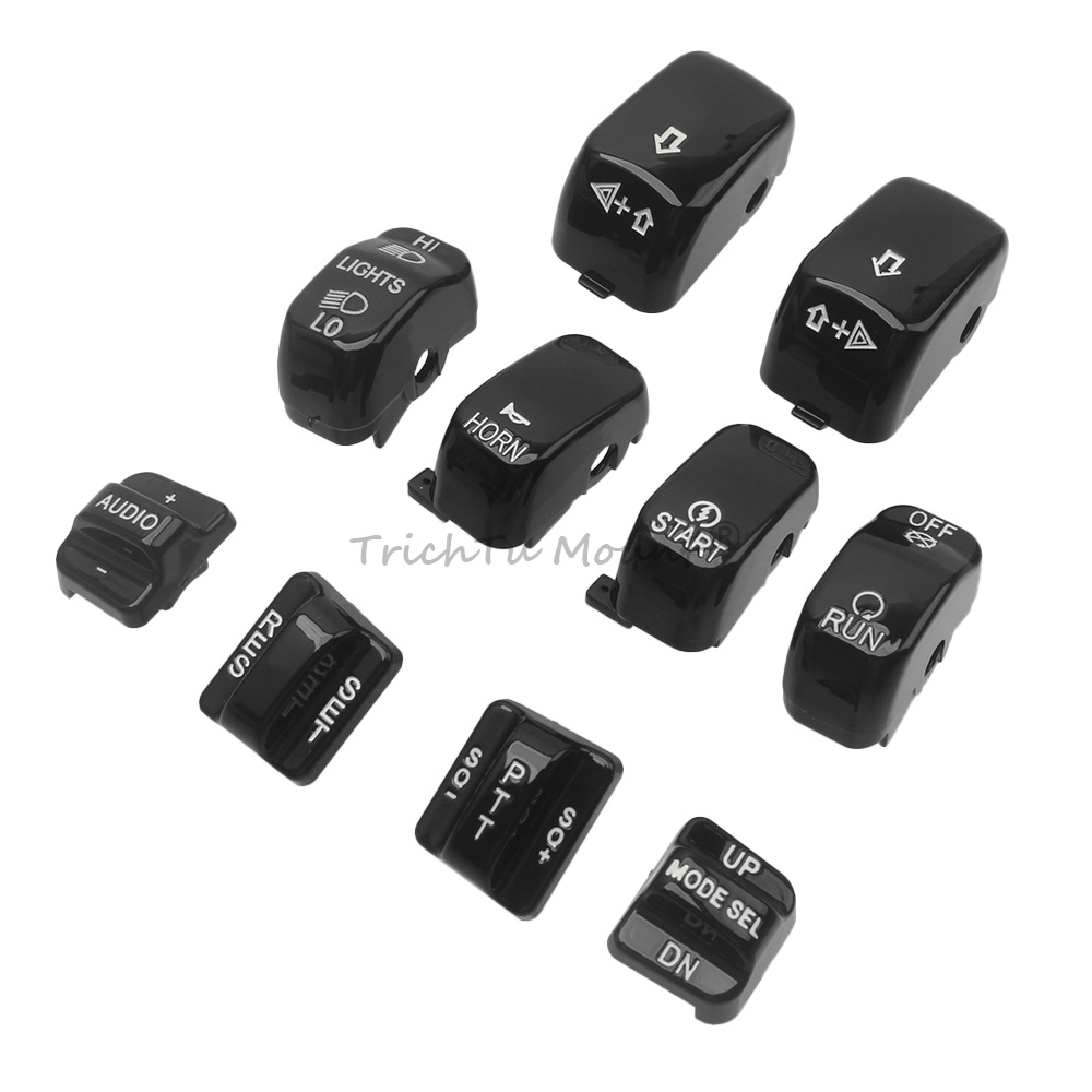 Black switch caps complement other chrome hand control accessories (Chrome/black Master Cylinder Kit, Chrome/black Hand Levers, Chrome/black Switch Housings and Chrome/black Master Cylinder Cover)