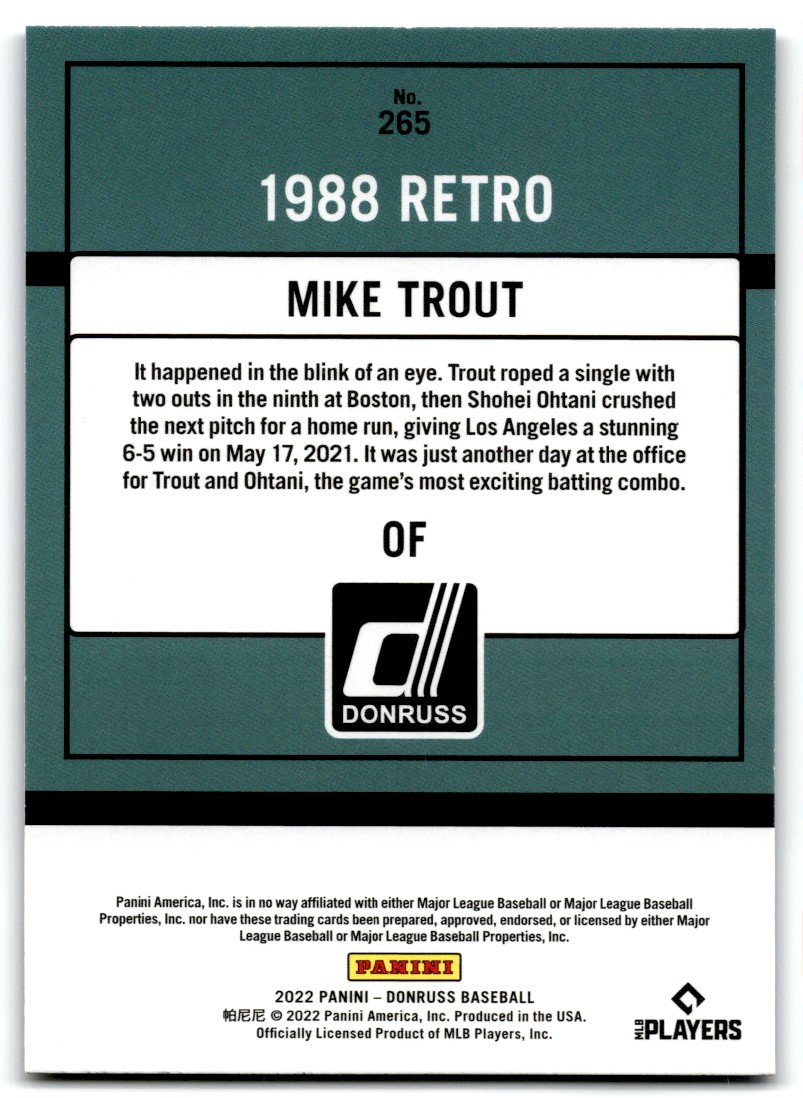 | 2022 Donruss Nickname 265 Mike Trout | ||||||||||||||||||