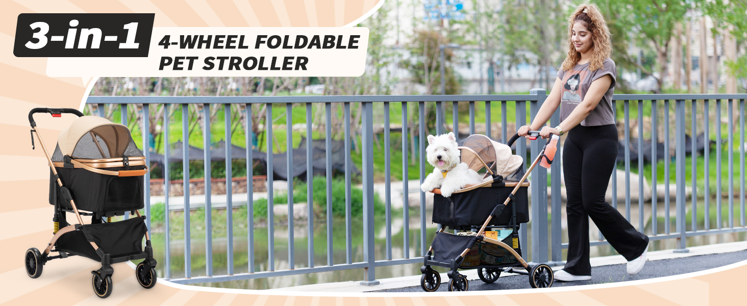 【3-in-1 Versatile Design: Pet Stroller, Basket & Storage Cart】