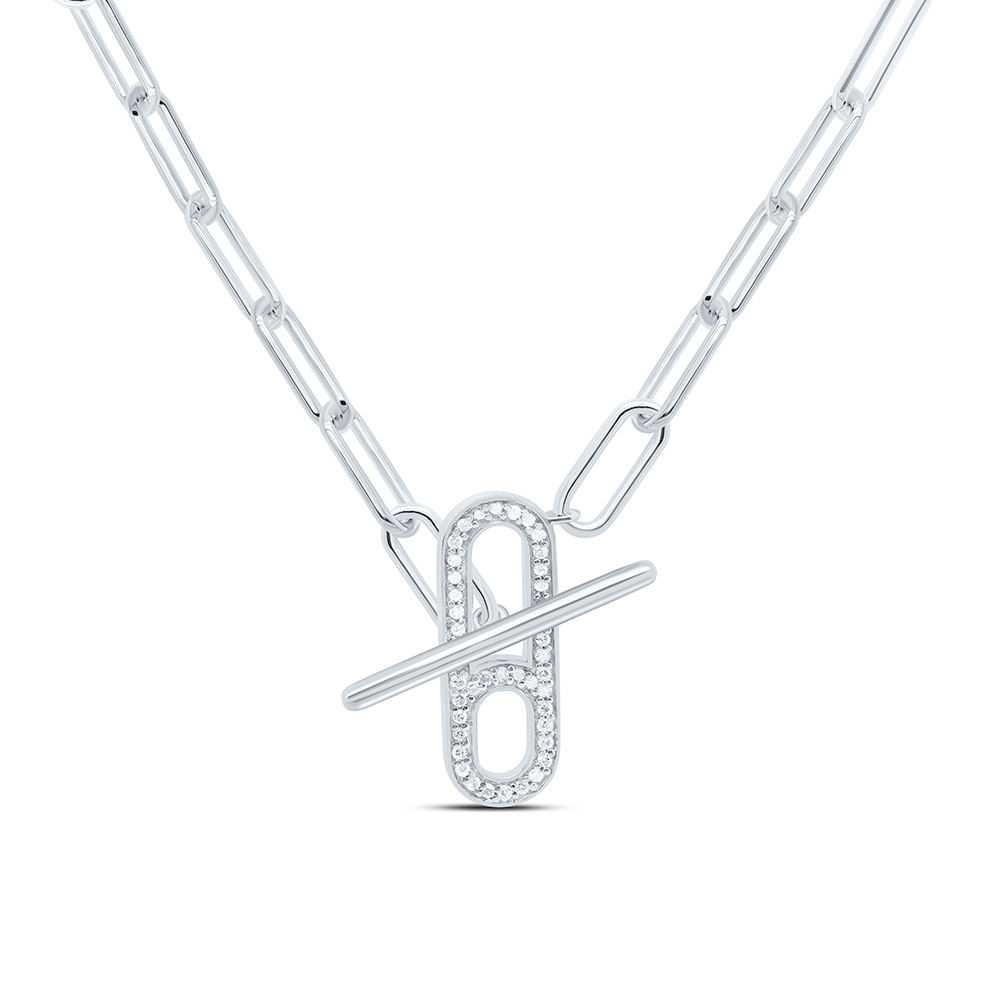 (1.31 gr. of 925 Sterling Silver | Total Carat Weight: 0.17 ct. t.w. of Diamonds | Necklace Length: 18" | Necklace Width: 3mm | Charm Length: 9mm| Charm Width: 20mm | Clarity: I1 - I2 | Color: H - I| Women's Natural Round Diamond T Bar Statement Charm Link Necklace)