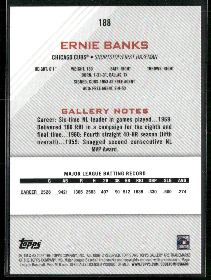 2022 Topps Gallery Printer Proof Baseball Card Ernie Banks Chicago Cubs #188