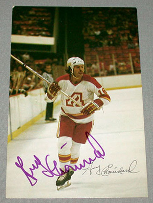 Original NHL Atlanta Flames Guy Chouinard Signed Postcard # 2 . He has signed the front with a blue felt pen and the signature is very clean and clear. This signed postcard is guaranteed to be genuine and original and will come with a letter of authenticity. Condition is excellent with very light sign of handling and age. Feel free to email me if you have any questions.
