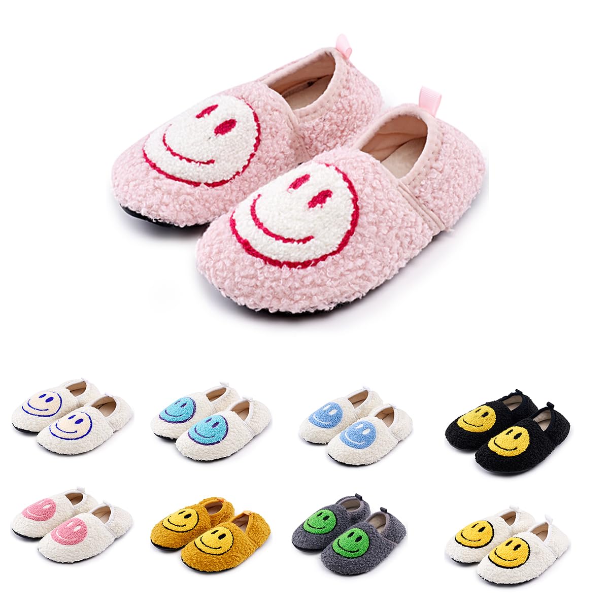 FUUPNN Smile Face Slippers for Toddler Boys Girls,Retro Cute Soft Plush Fuzzy House Slippers Non-slip Slippers with Memory Foam Warmth Happy face Slippers Warm Cozy Socks Smile Slippers for Winter