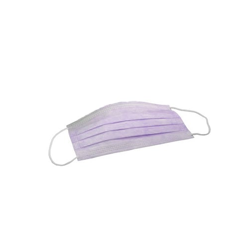 LAVENDER Ear-Loop Face Mask Latex-Free 50/Bx. Made of soft 3-ply non-allergenic synthetic fabric. Filtration efficiency 95%+ at 0.1 micron. Padded elastic earloops and adjustable nose bridge. Latex-free and fiberglass-free.