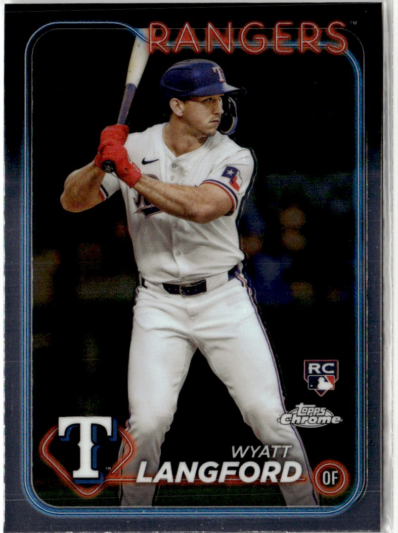 2024 Topps Chrome Baseball Card Base RC Wyatt Langford Rookie Texas Rangers #122