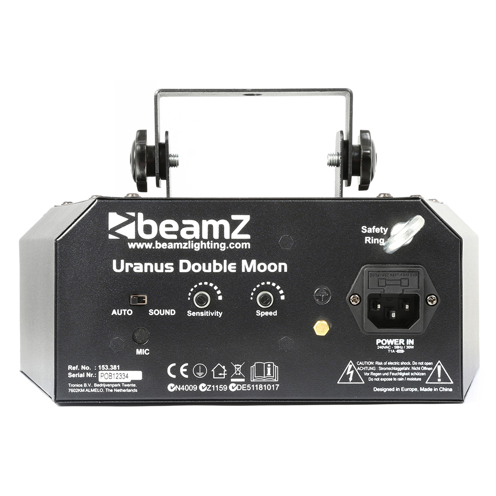 The Uranus from Beamz is an LED double moonflower effect light with the potential to be the key feature in your lighting shows. With its stunning, sharp effects and powerful long-life LEDs twinned with a powerful centred strobe light, the Uranus does it all and more. Ideal for use at parties or DJ sets, or even at home for house parties and discos. Packed to the rim with a range of effects, such as automatic or sound activation, sensitivity and speed controls; users have the ability to customise this unit as they see fit. Easy to install and operate, the Uranus deserves a space in any lighting rig, whatever the occasion.