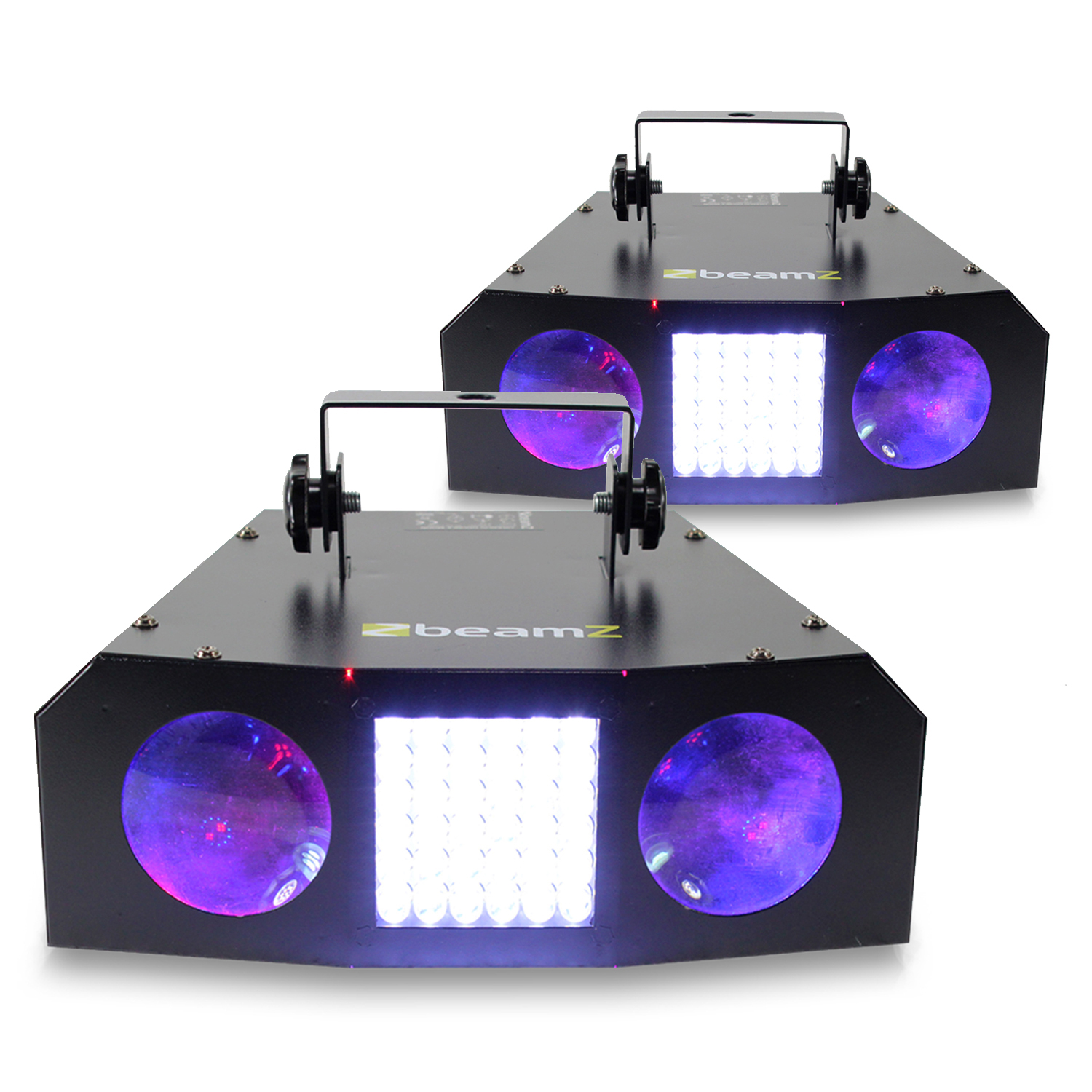For a disco dance floor that's out of this world: try this package of two double-moon Uranus LED lights from Beamz. These double-moonflower effect lights have the potential to be the key feature in your lighting shows. With their stunning, sharp effects and powerful long-life LEDs twinned with a powerful centred strobe light, the Uranus does it all and more. Ideal for use at parties or DJ sets, or even at home for house parties and discos. Packed to the rim with a range of effects, such as automatic or sound activation, sensitivity and speed controls; users have the ability to customise these units as they see fit.