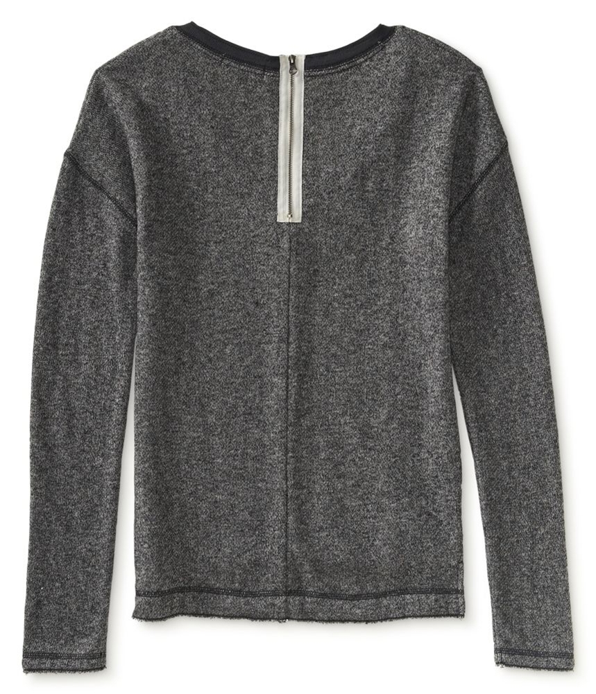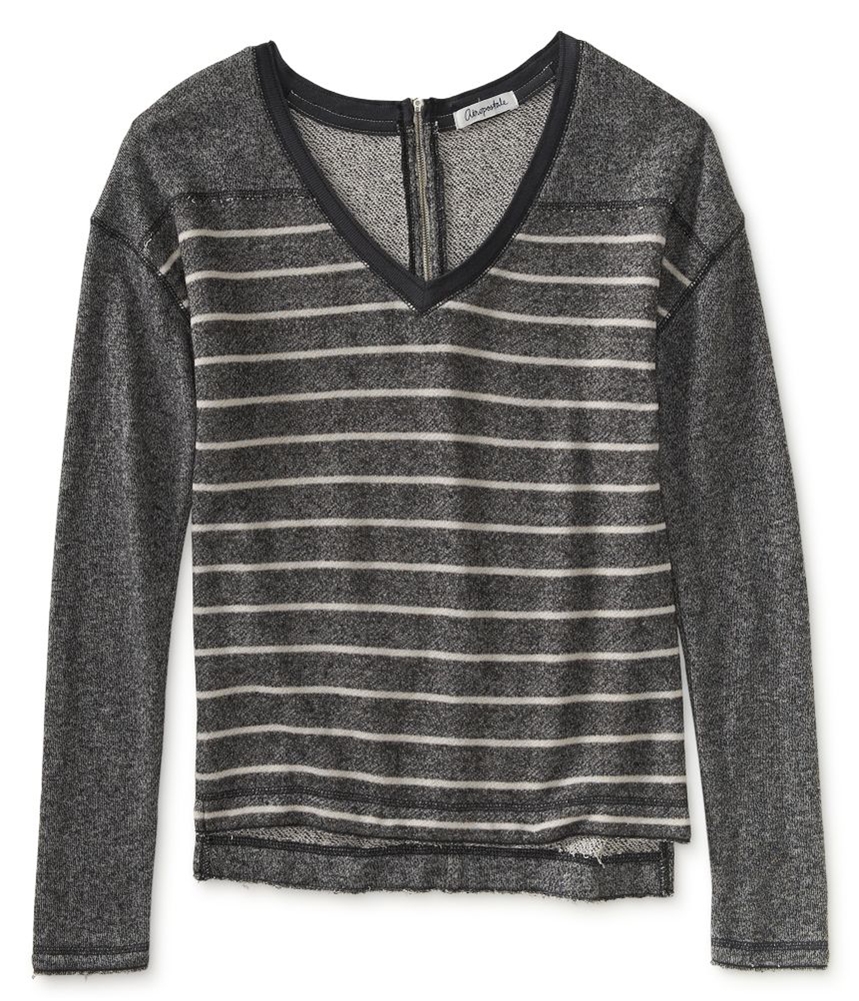 Additional Details: Knit sweater with striped pattern Quarter zipped back Long sleeves and V neck Rough edges and hem