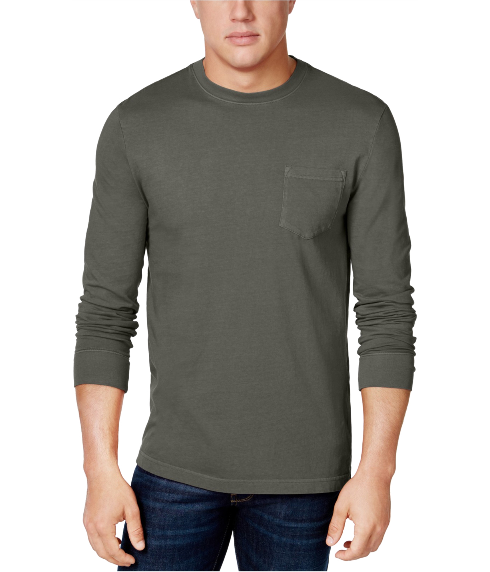 CLASSIC DESIGN: This T-Shirt sports a classic fit with a crew neck, long sleeves, and a solid pattern. Features such as a chest pocket, ribbed collar, and ribbed cuffs enhance its appeal.