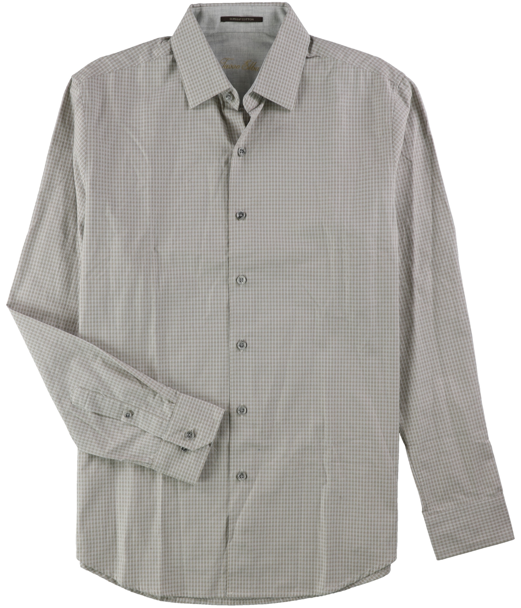 Tasso Elba Mens Supima Check Button Up Shirt, caramecombo, S Neck