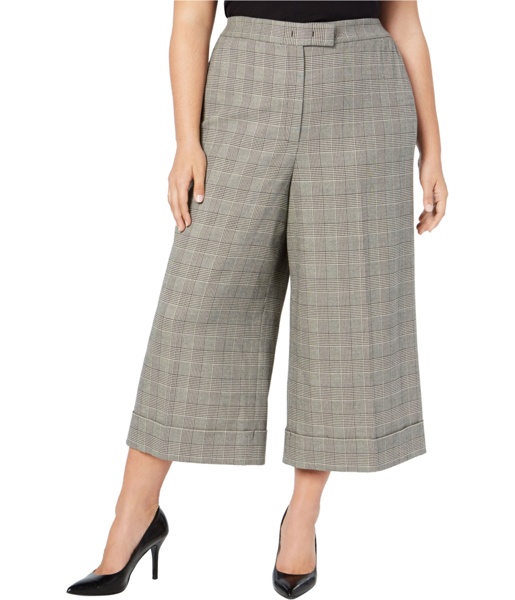 Anne Klein Womens Plaid Culotte Pants, black, Plus Size, 24W