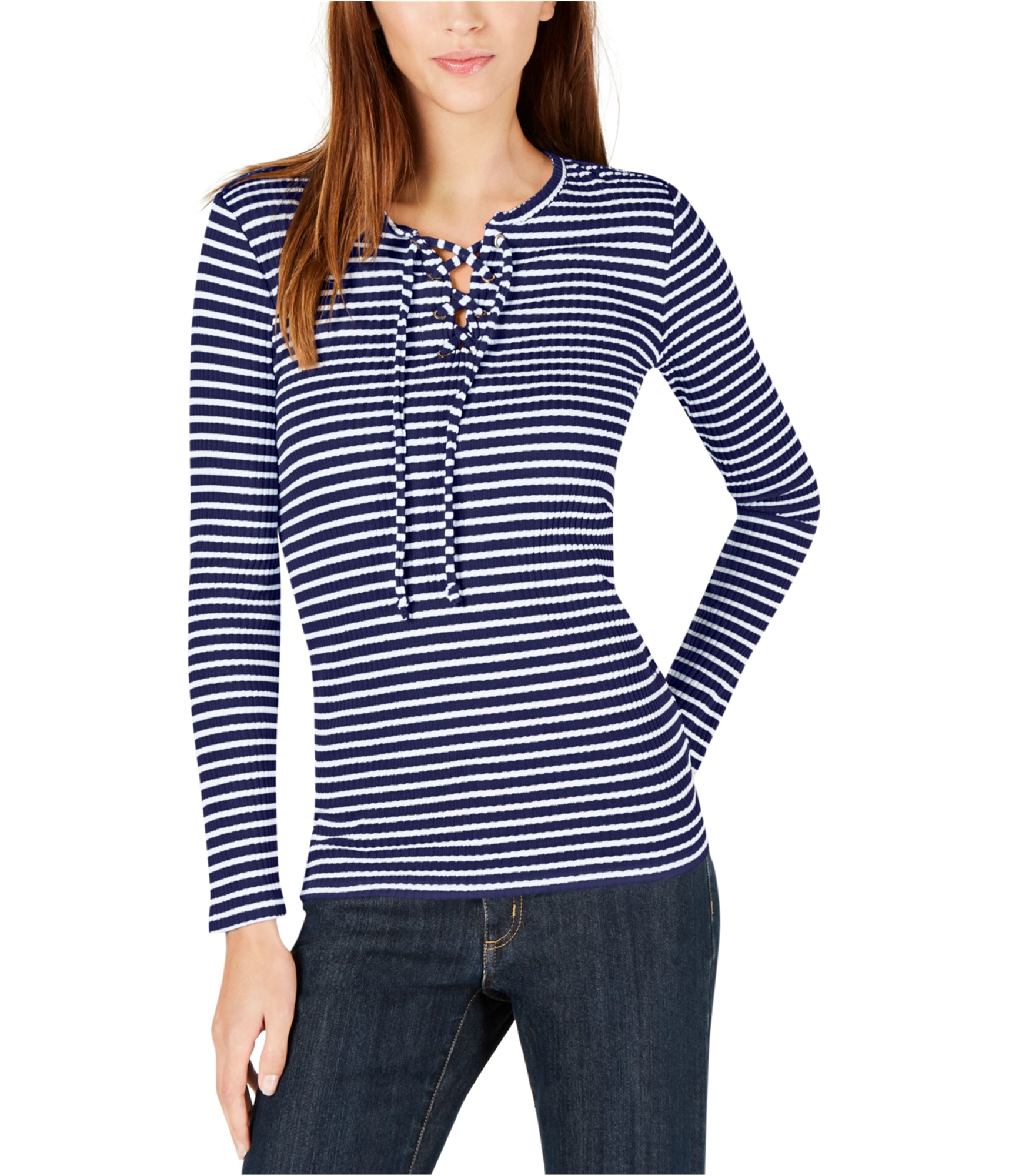 Michael Kors Womens Lace Up Pullover Blouse, medblue, XL