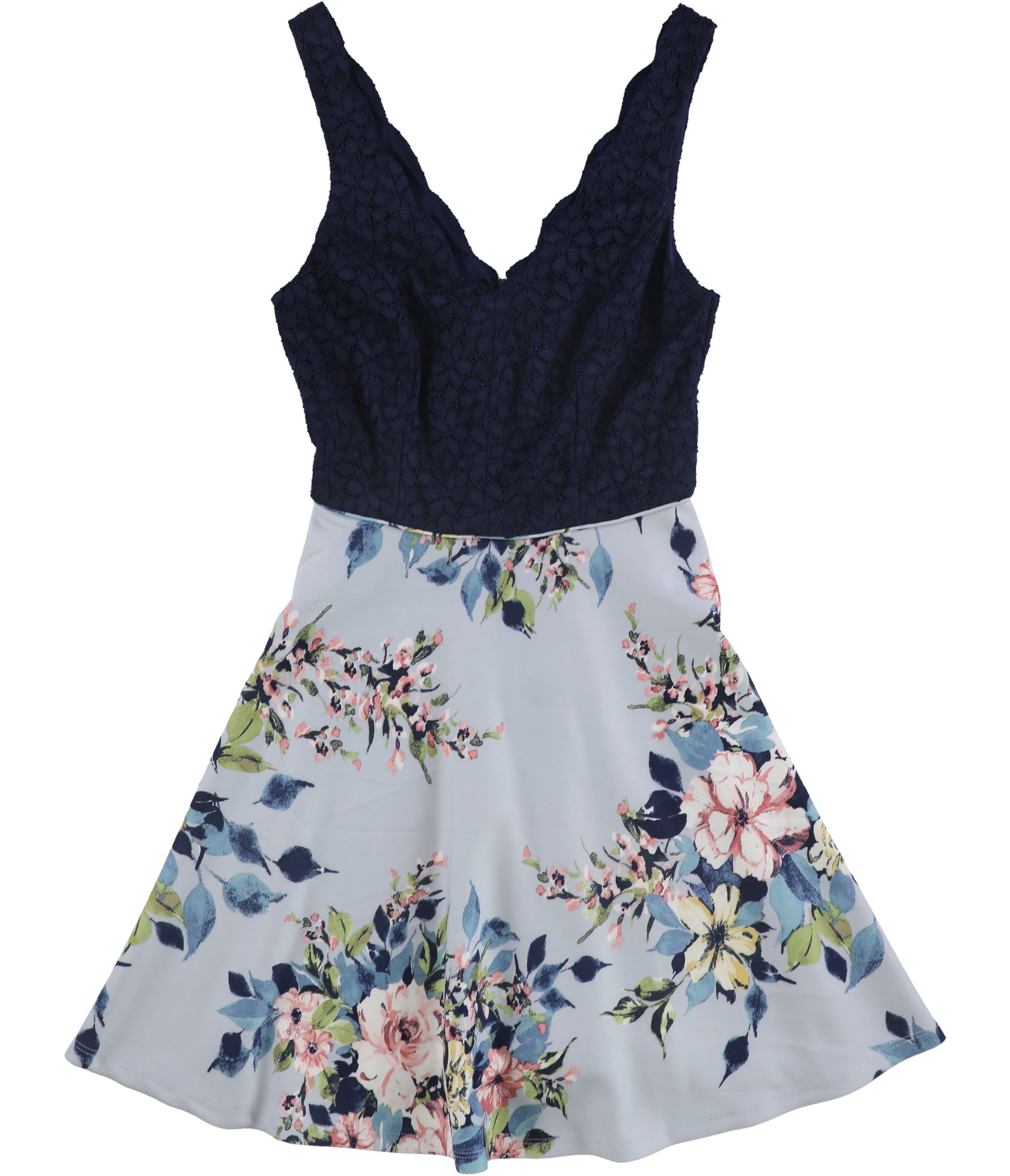 City Studio Womens Floral Fit & Flare Dress, blue, Juniors, 5